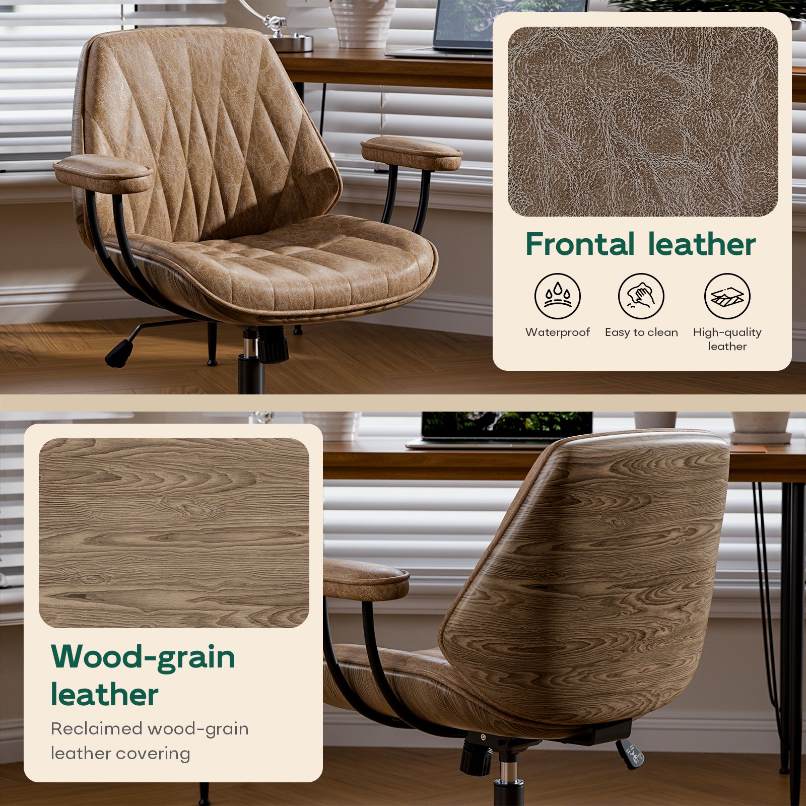 - ☕Vintage Design & Premium Leather Look: Elevate your workspace with this mid century modern inspired brown office chair. Upholstered in soft touch faux leather, it offers an elegant, timeless aesthetic that complements any home office, small office, reception area or study room