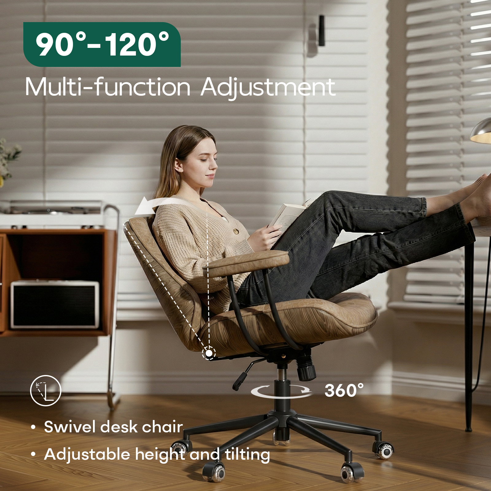 ✓ 90°-120° reclining backrest with 3-angle locking