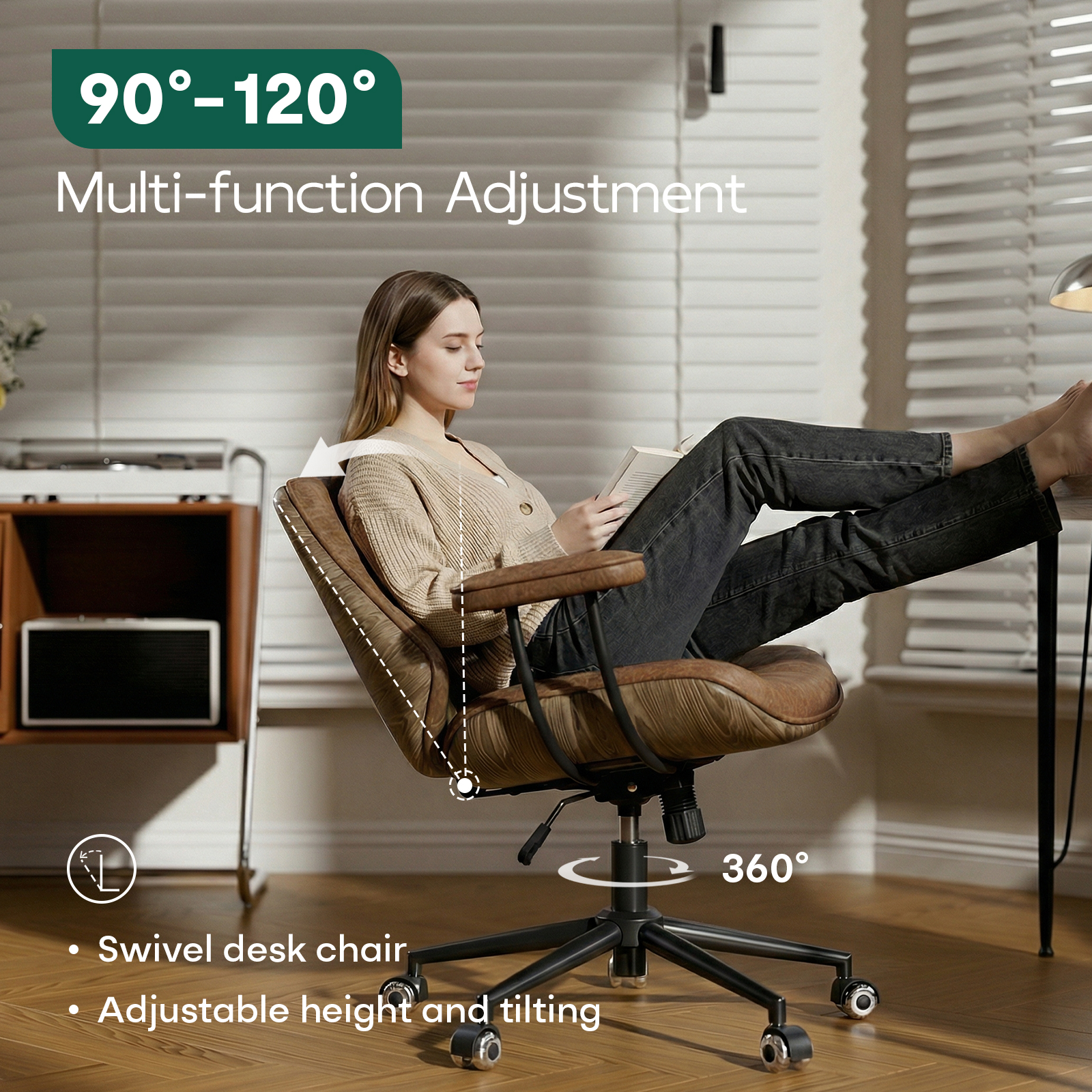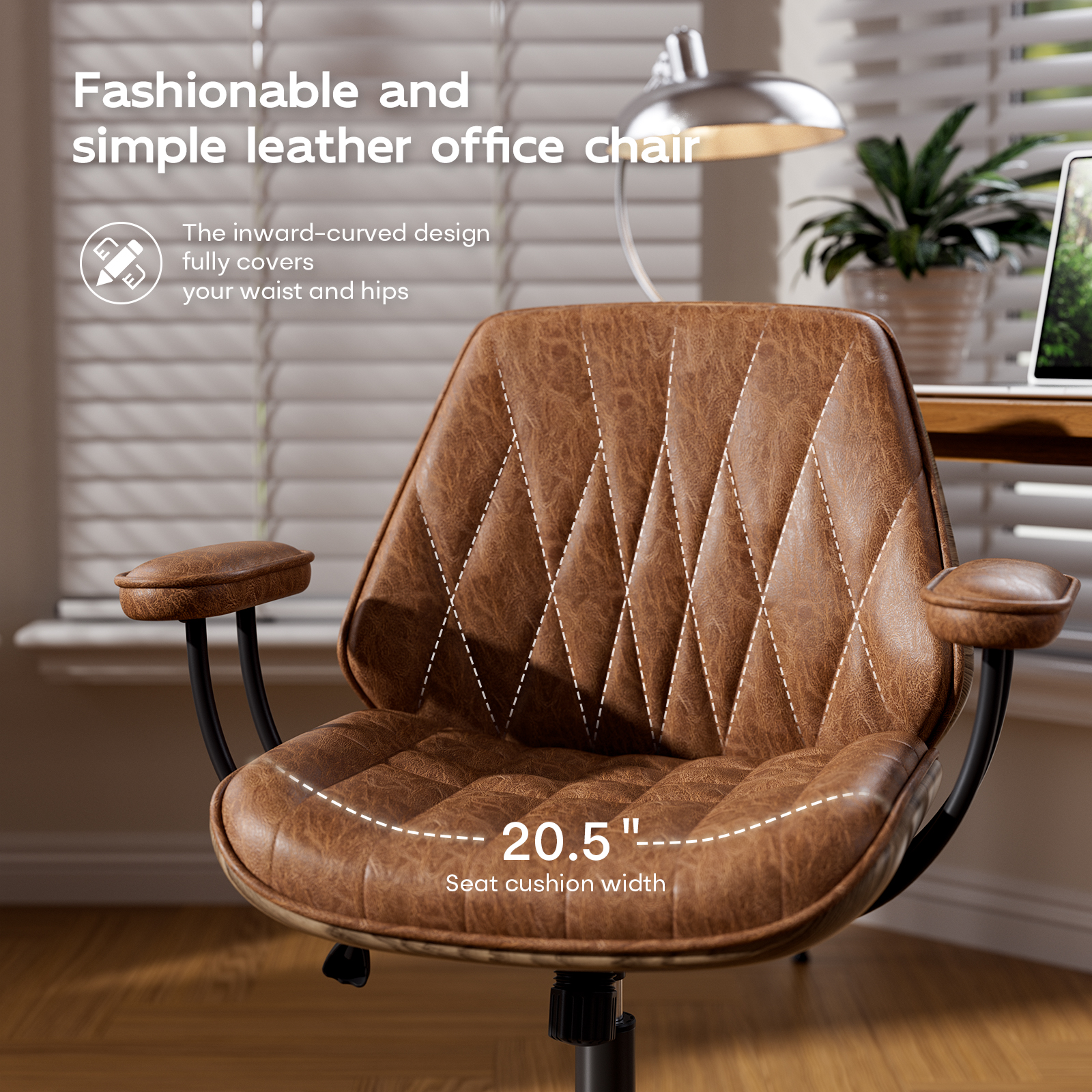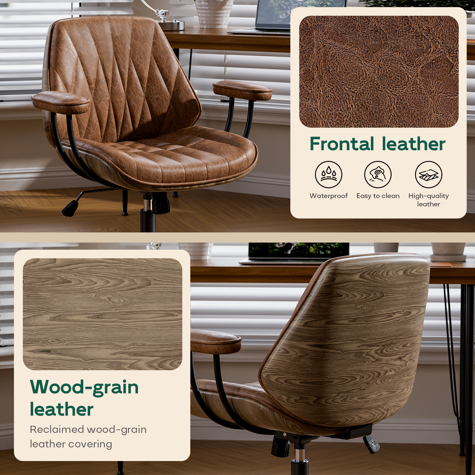 - ☕Vintage Design & Premium Leather Look: Elevate your workspace with this mid century modern inspired brown office chair. Upholstered in soft touch faux leather, it offers an elegant, timeless aesthetic that complements any home office, small office, reception area or study room
