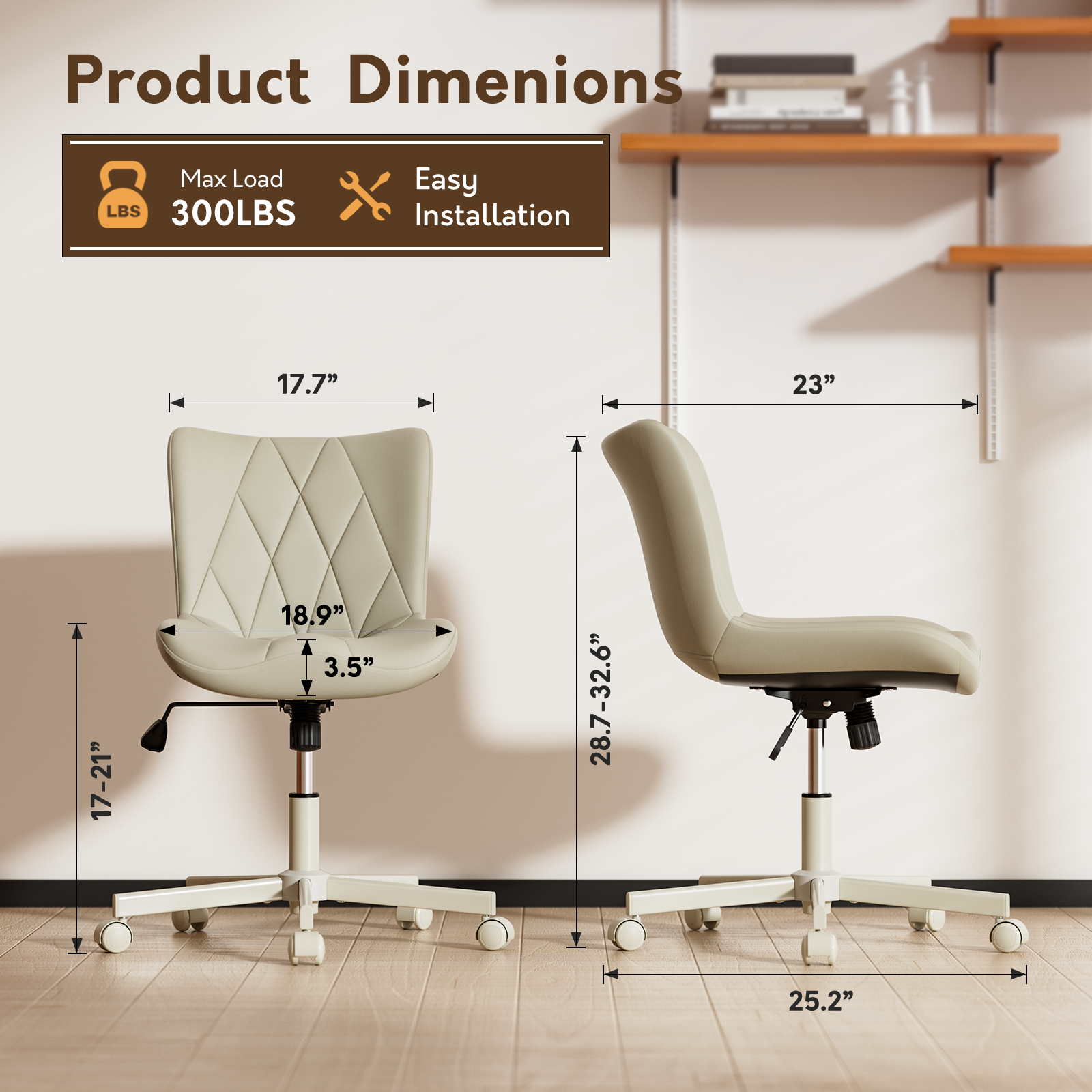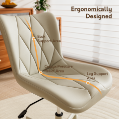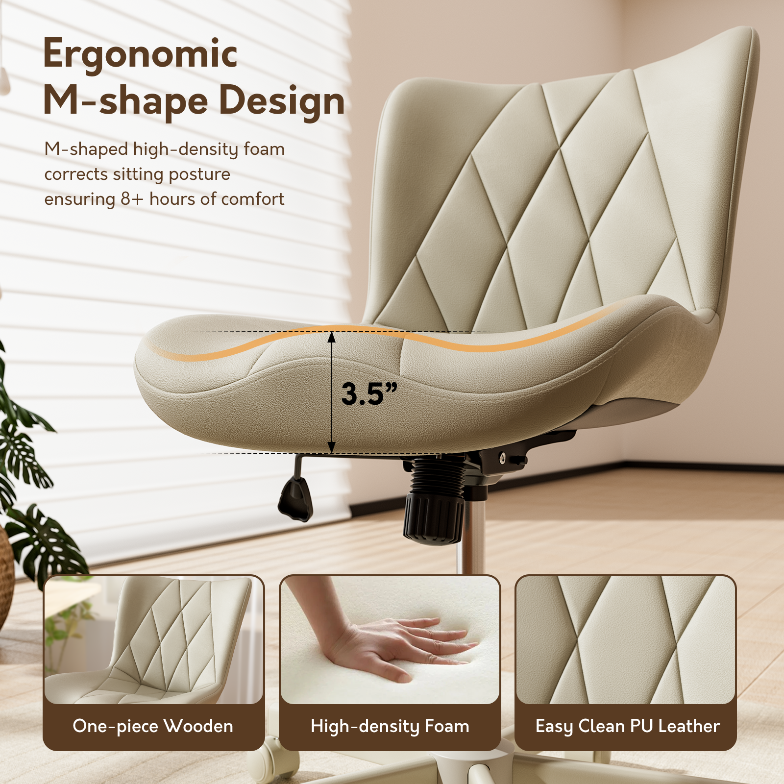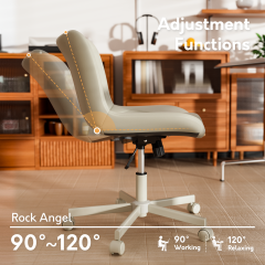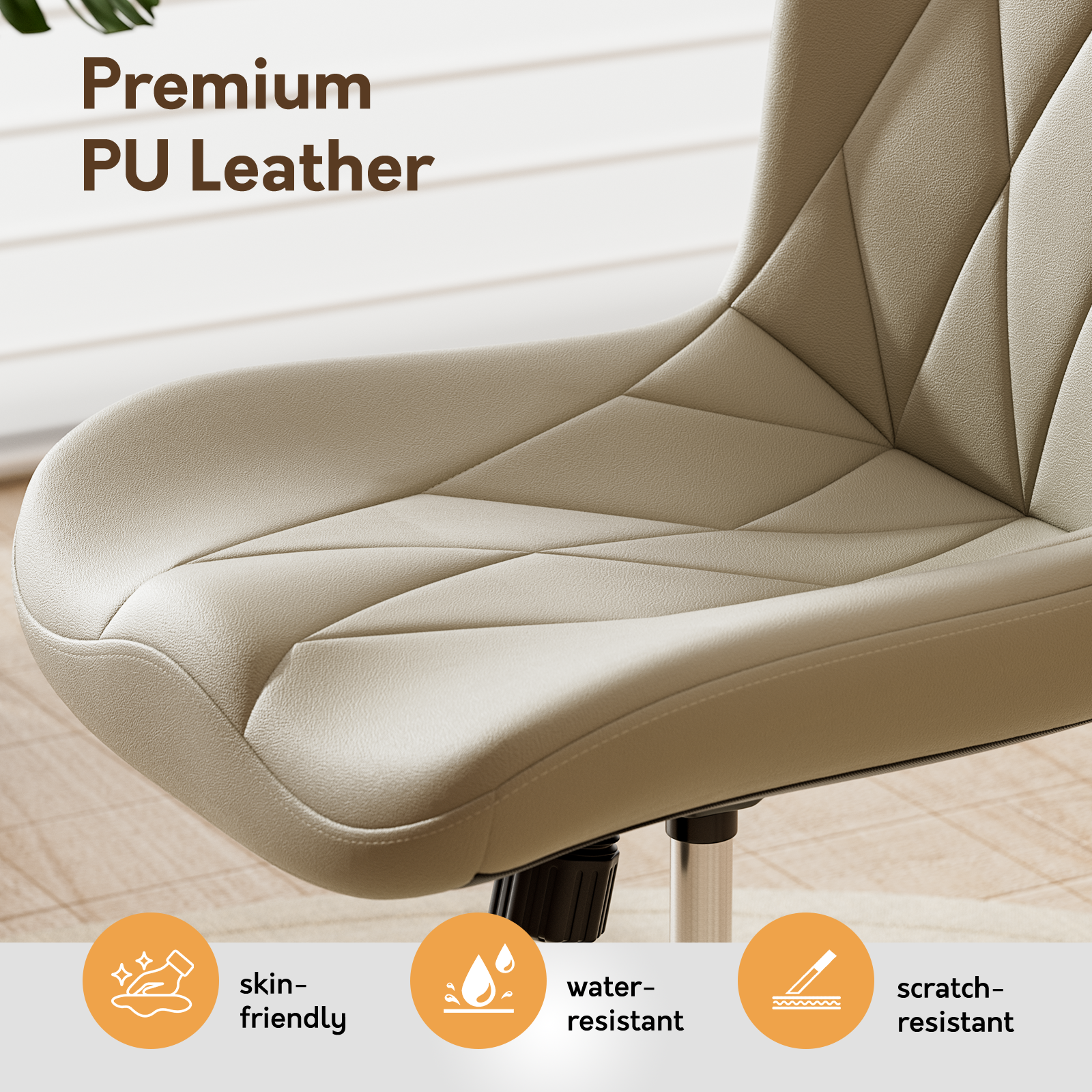 Genpo Armless Desk Chair, Morden Home Office Chair no Arms, Adjustable Height & Rocking Computer Chair, PU Leather Vanity Chair, Ergonomic Seat Soft Padded Desk Chairs for Home Small Space, Beige