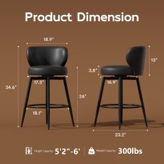 - 🌈Wider Counter Bar stools: Black bar stool set of 2 with wider seat cushion and backrest for a comfortable experience, ideal for those with a fuller figure; Overall Dimensions: 23.2 W x 23.2 D x 34.6 H inches; Seat Size: 17.3 W x 16.9 D inches; Seat Height: 26 inches; Weight Capacity: 300 lbs