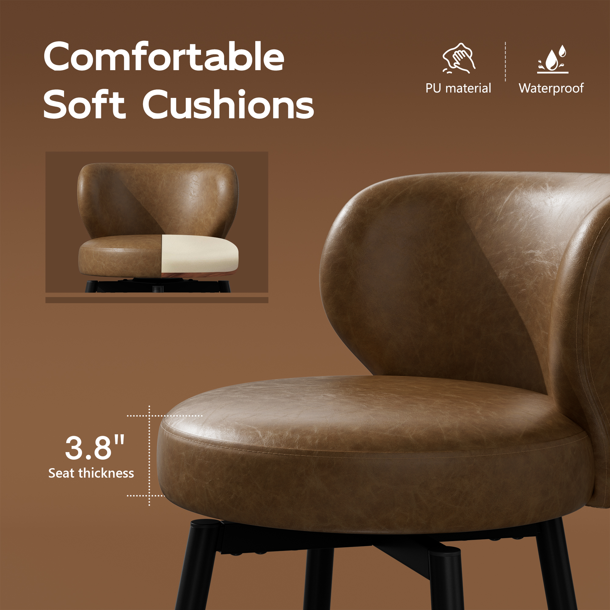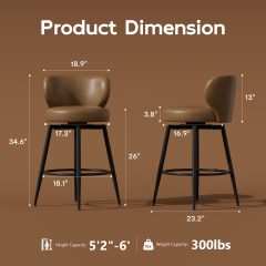 - 🥑Comfortable Swivel Bar Stools: Counter height stools set of 2 are crafted from premium leather, elastic and fade-resistant, with high-density foam for softness; Bar chairs’ 360 swivel function allows easy rotation and chatting; Lean back on the backrest and use the footrest for better posture