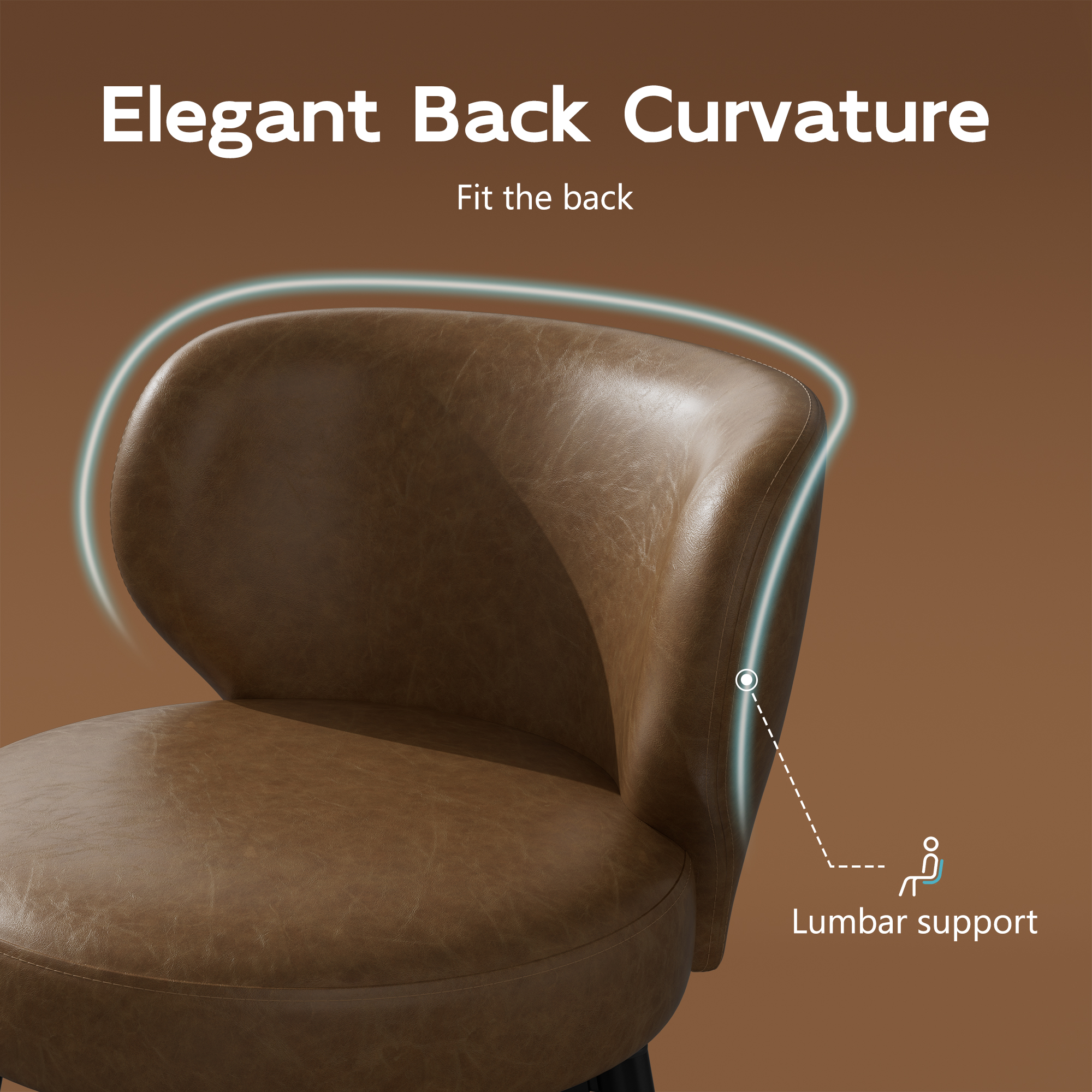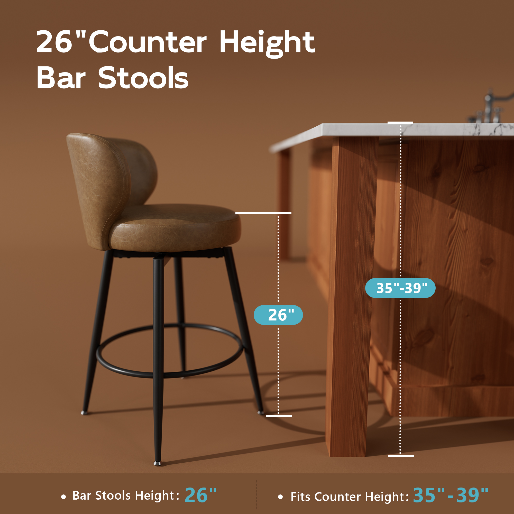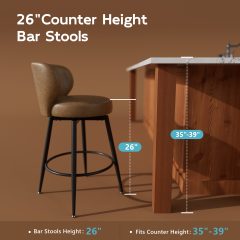 Solfway Bar Stools Set of 2, 26 Inch Barstools with Sturdy Legs, Brown Leather Farmhouse Swivel Counter Height Bar Stool for Kitchen, Dining, Bar
