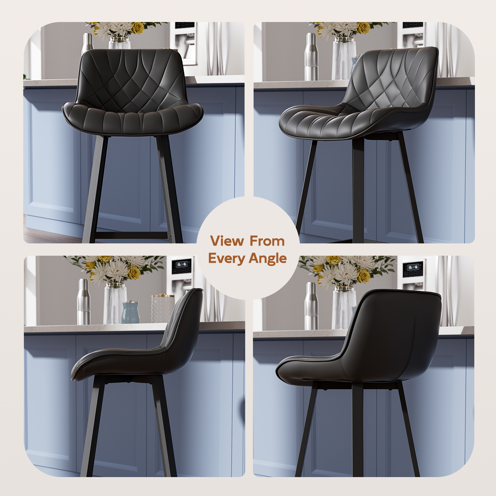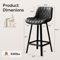 - đLuxurious & Practical:Â Upgrade your space with these leather bar stools set of 2, upholstered in soft pu leather for easy cleaning and long-lasting durability. The sleek black bar stools blend with any decor.