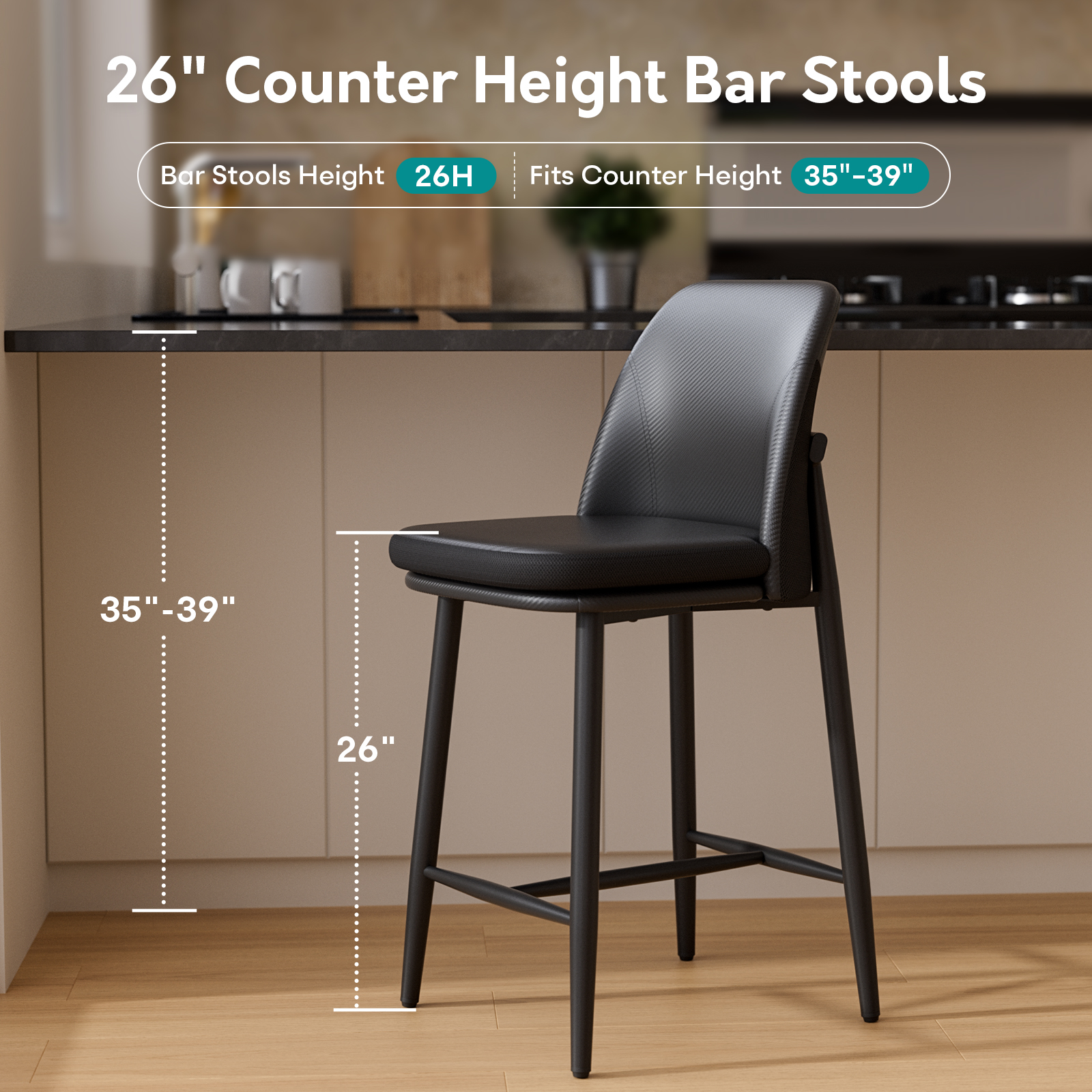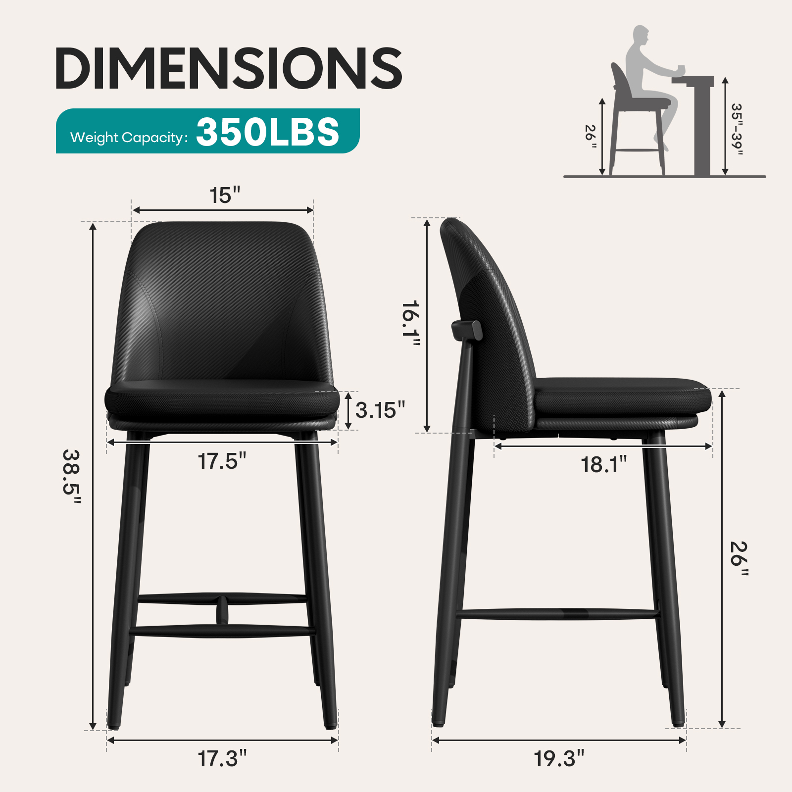 Genpo Bar Stools Set of 4, Upholstered Counter Height Bar Stools, Counter Stools 26 Inch Barstools with Back, Metal Legs and Textured Leather&Fabric for Kitchen Island Dining Room, Black