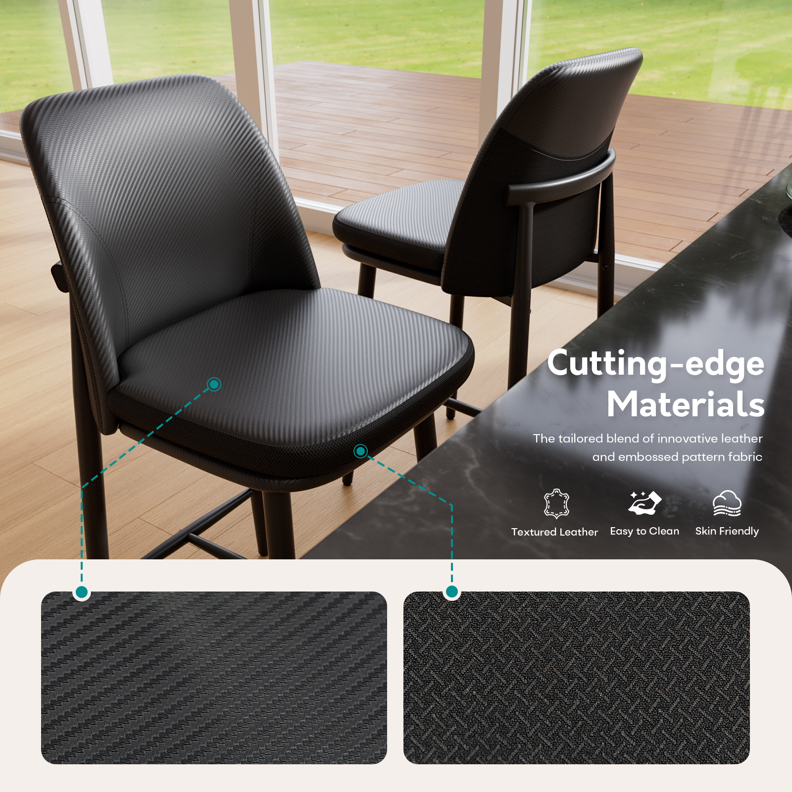 - Solfway counter stools set of 2 showcase a sophisticated dual-material construction. They combine the refined touch of high-end leather with the cozy warmth of textured fabric, seamlessly marrying elevated style with everyday comfort for a modern home.
