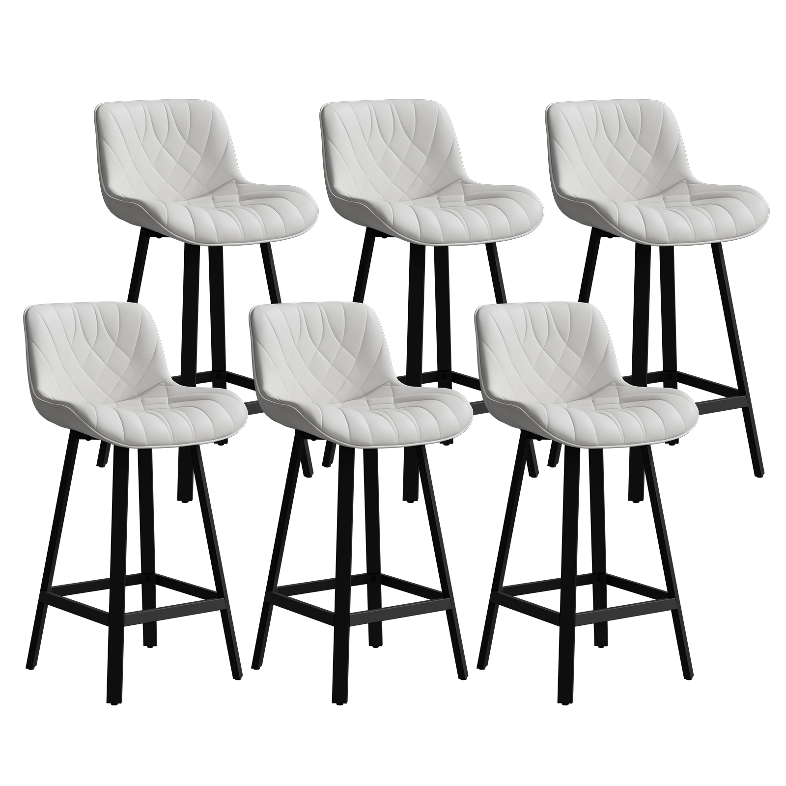 Solfway Bar Stools Set of 6, 26 Inch Barstools with Metal Legs, White Leather Farmhouse Upholstered Counter Height Bar Stool for Kitchen, Dining, Bar