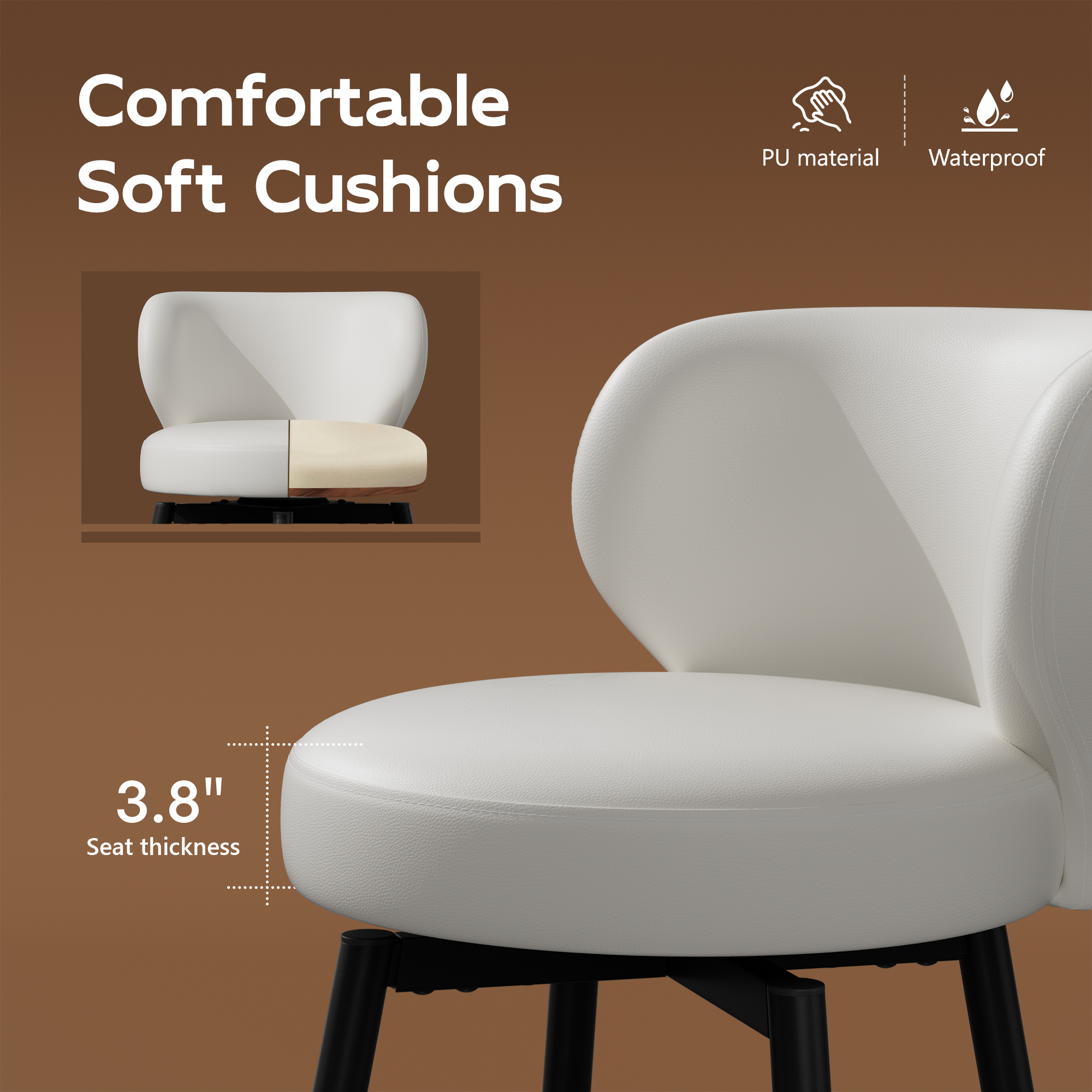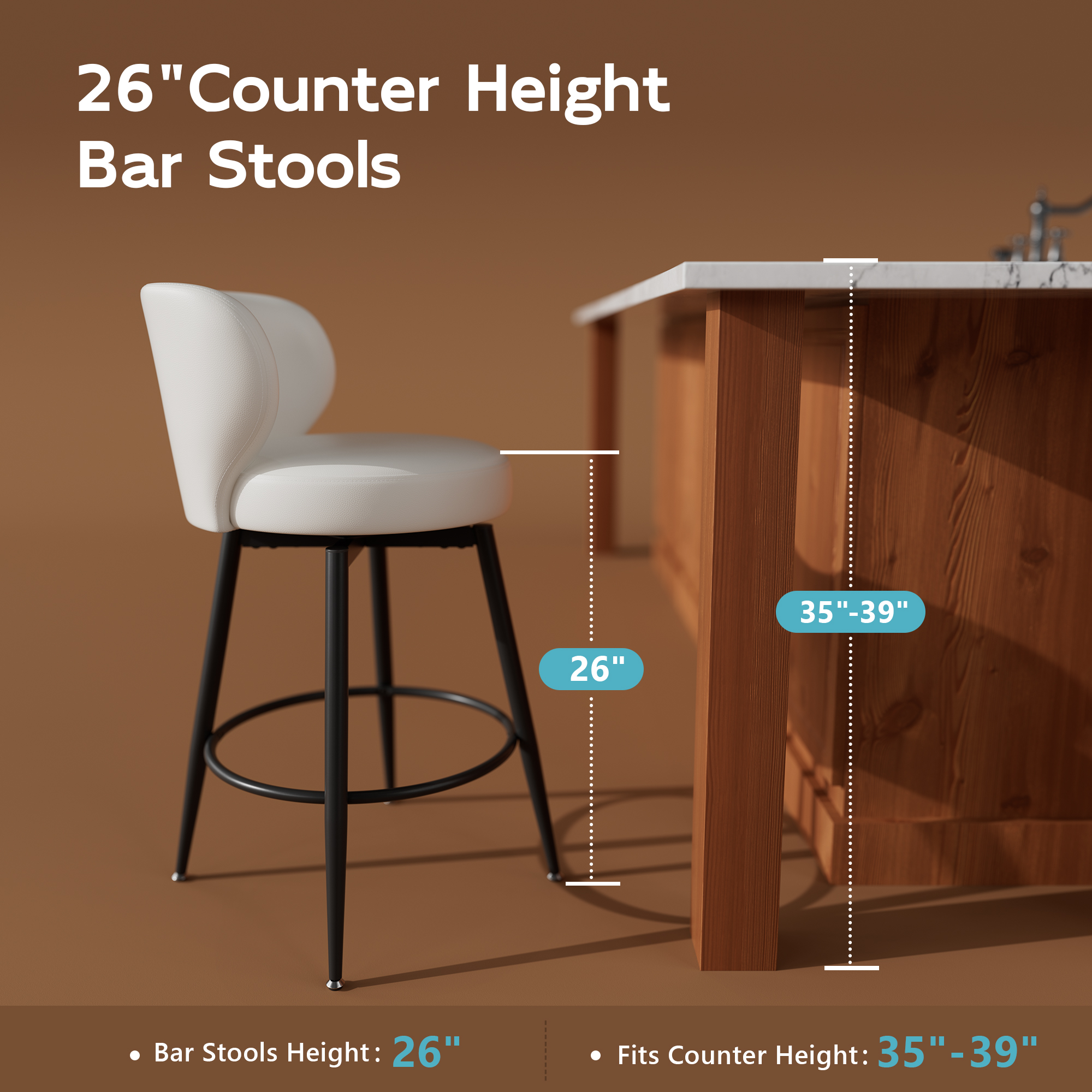 - 🥑Comfortable Swivel Bar Stools: Counter height stools set of 2 are crafted from premium leather, elastic and fade-resistant, with high-density foam for softness; Bar chairs’ 360 swivel function allows easy rotation and chatting; Lean back on the backrest and use the footrest for better posture