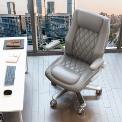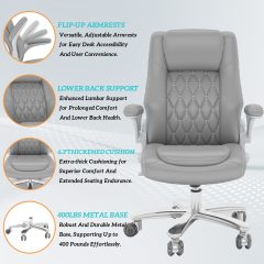 Solfway Big and Tall Office Chair 400 lbs, High Back PU Leather Executive Office Chair with Lumbar Support and Rubber Wheels, Flip-up Armrests Computer Desk Chairs, Gray