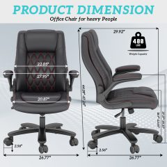 Solfway Big and Tall Office Chair 400LBS, High Back Black Leather Executive Office Chair, Computer Desk Chair with Adjustable Flip-up Arms, Wheels and Lumbar Support