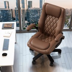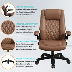 Solfway Big and Tall Office Chair 400LBS, High Back Brown Leather Executive Office Chair, Computer Desk Chair with Adjustable Flip-up Arms, Wheels and Lumbar Support