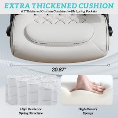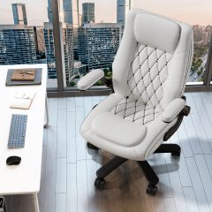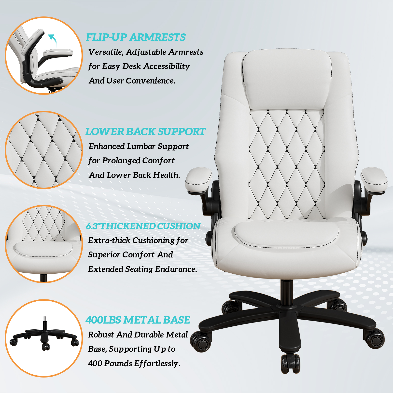 Solfway Big and Tall Office Chair 400LBS, High Back White Leather Executive Office Chair, Computer Desk Chairs with Adjustable Flip-up Arms, Wheels and Lumbar Support