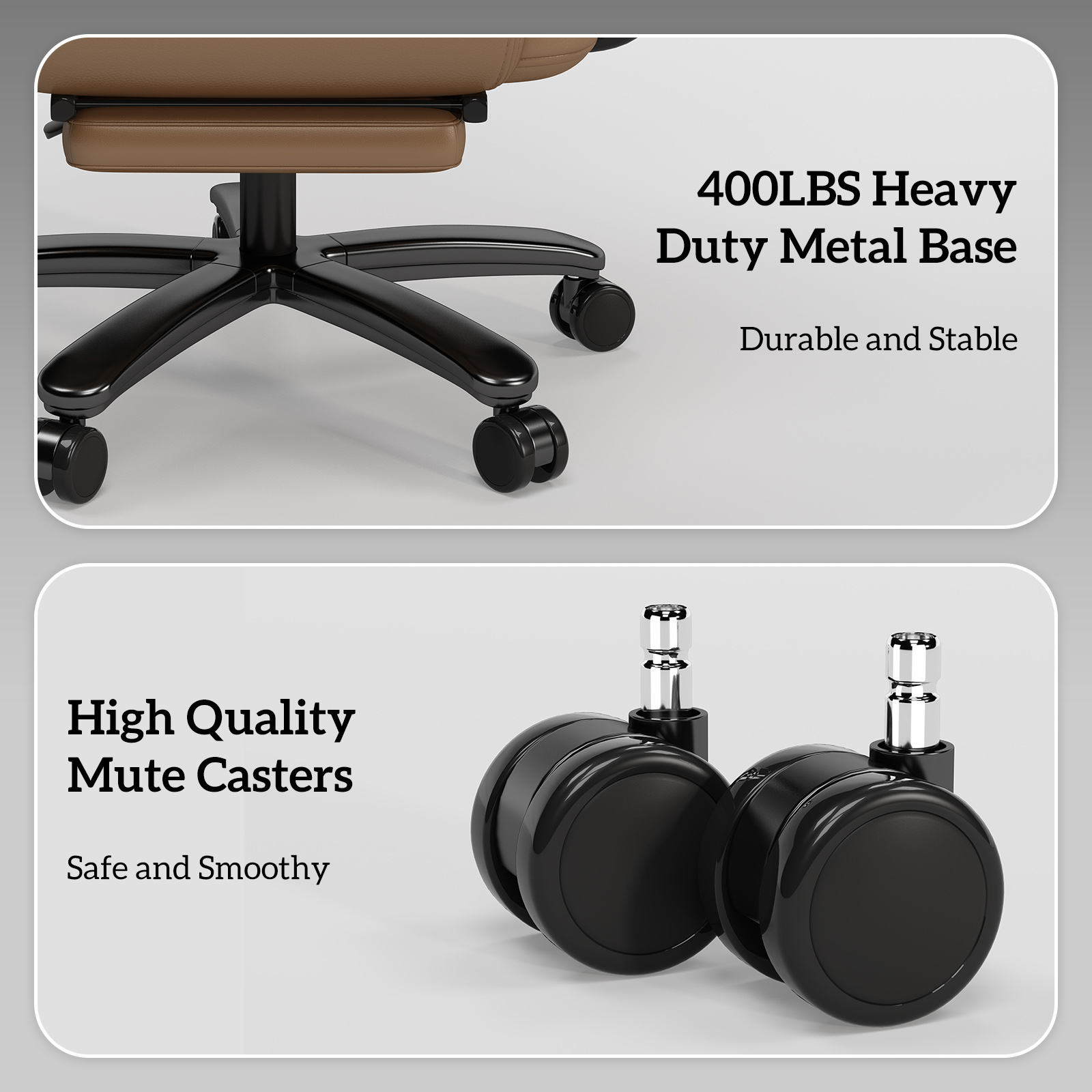 Solfway Big and Tall Office Chair 400lbs, Reclining Home Office Desk Chair with Footrest for Adult, High Back Wide Seat Executive Computer Chair, Brown