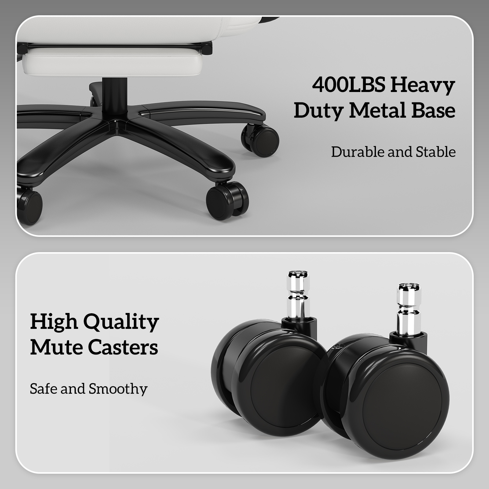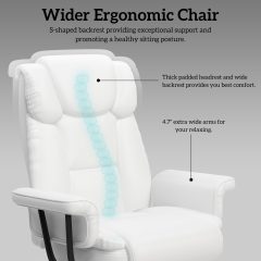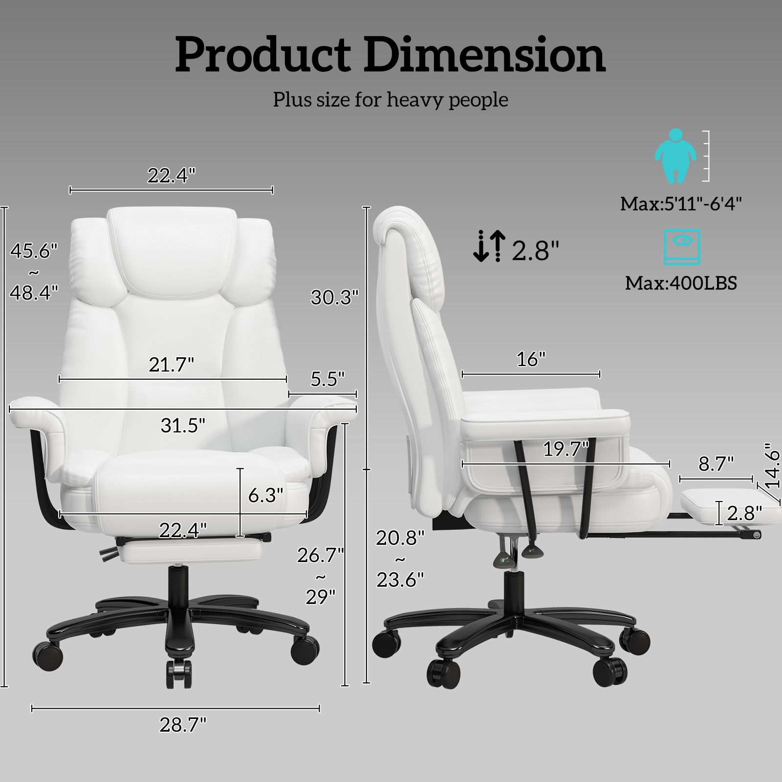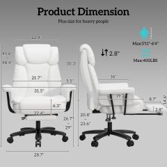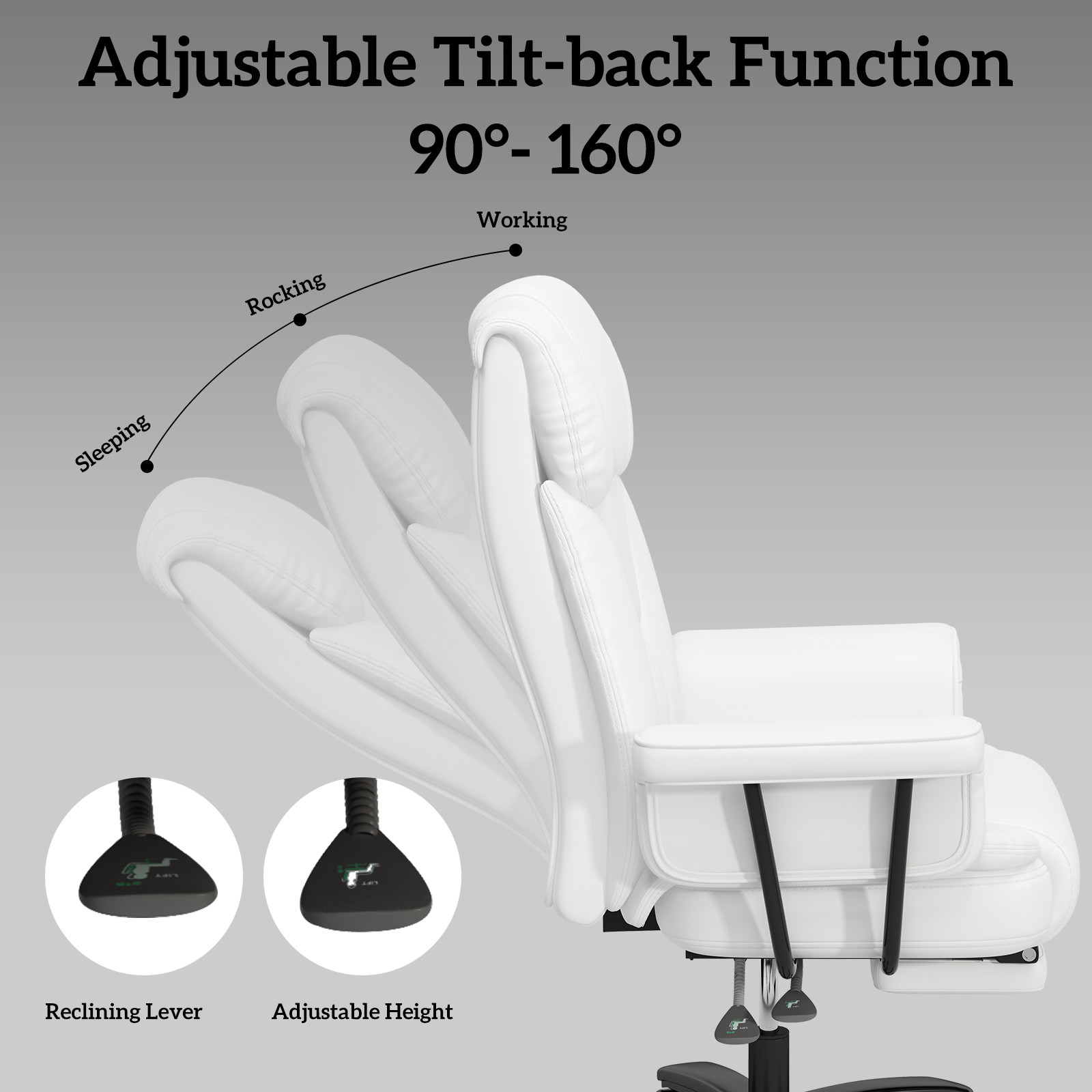 Solfway Big and Tall Office Chair 400lbs, Reclining Home Office Desk Chair with Footrest for Adult, High Back Wide Seat Executive Computer Chair, White