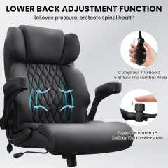 - 🚀【𝐈𝐧𝐟𝐥𝐚𝐭𝐚𝐛𝐥𝐞 𝐋𝐮𝐦𝐛𝐚𝐫 𝐒𝐮𝐩𝐩𝐨𝐫𝐭 𝐟𝐨𝐫 𝐁𝐚𝐜𝐤 𝐏𝐚𝐢𝐧 𝐑𝐞𝐥𝐢𝐞𝐟】Say goodbye to back discomfort. This big and tall office chair features customizable lumbar support—simply inflate and adjust. Find your ideal position with seat height adjustment and padded armrests for all-day comfort.