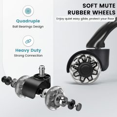 - 🚀【𝐔𝐧𝐢𝐪𝐮𝐞 & 𝐏𝐫𝐚𝐜𝐭𝐢𝐜𝐚𝐥 𝐔𝐩𝐠𝐫𝐚𝐝𝐞𝐝 𝐑𝐮𝐛𝐛𝐞𝐫 𝐂𝐚𝐬𝐭𝐨𝐫𝐬】Upgraded rubber casters on solfway big and tall executive computer desk chair glide smoothly and protect floors. Made of soft nylon with a PU layer, they leave no marks and operate quietly.