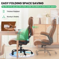 Solfway Big and Tall Office Chair 500LBS with Adjustable Lumbar Support and Padded Flip-up Arms, Brown PU Leather Executive Computer Desk Chair with Rubber Wheels and Wide Seat for Adults Teens