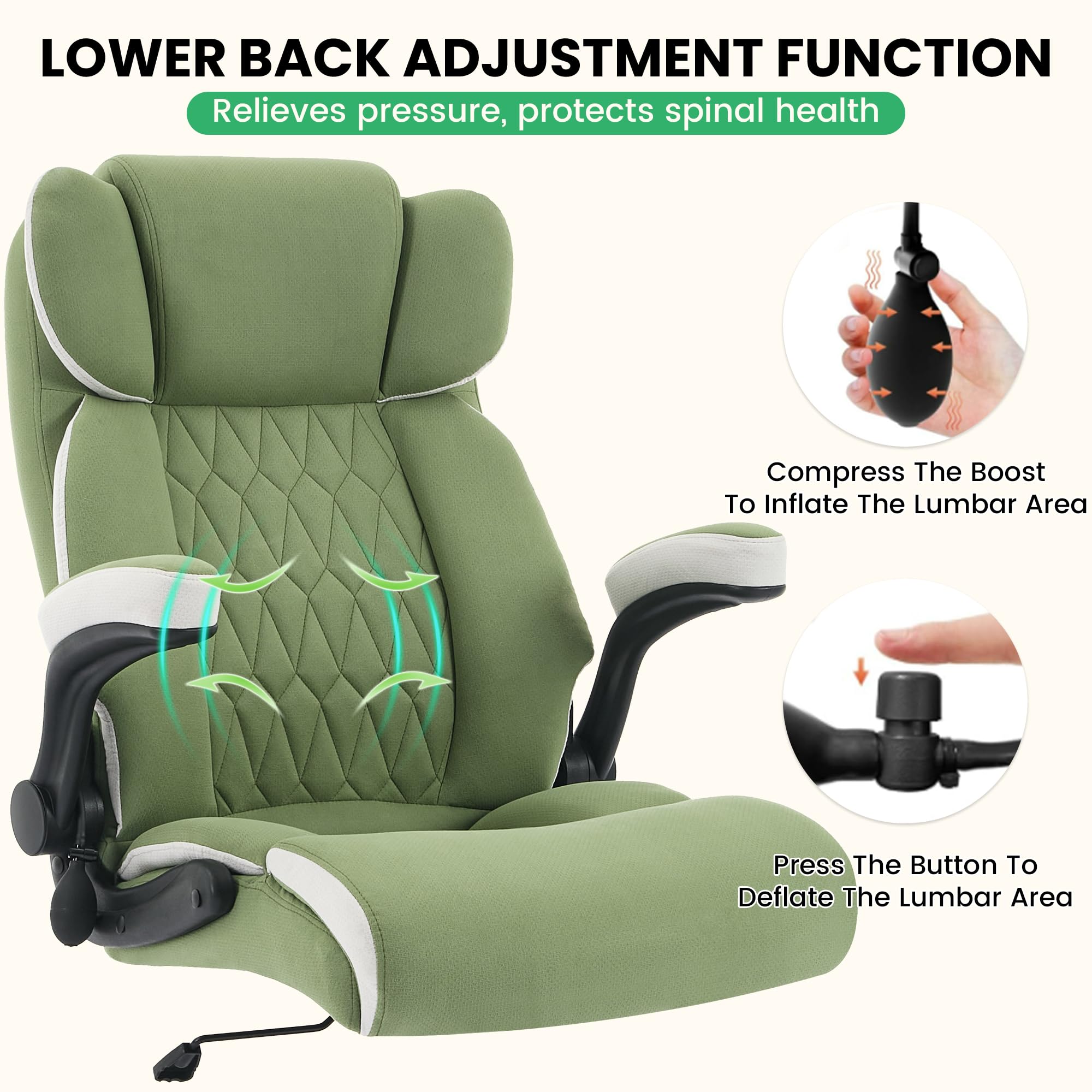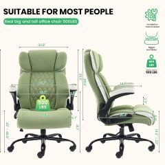 Solfway Big and Tall Office Chair 500LBS with Adjustable Lumbar Support and Padded Flip-up Arms, Green Fabric Ergonomic Executive Computer Desk Chair with Rubber Wheels and Wide Seat for Adults Teens