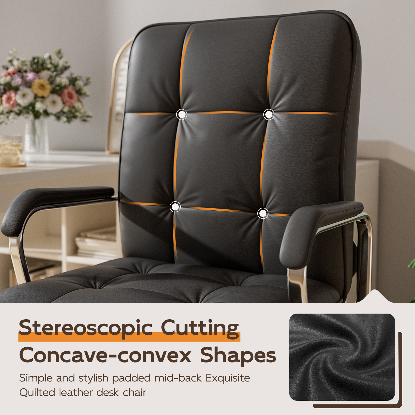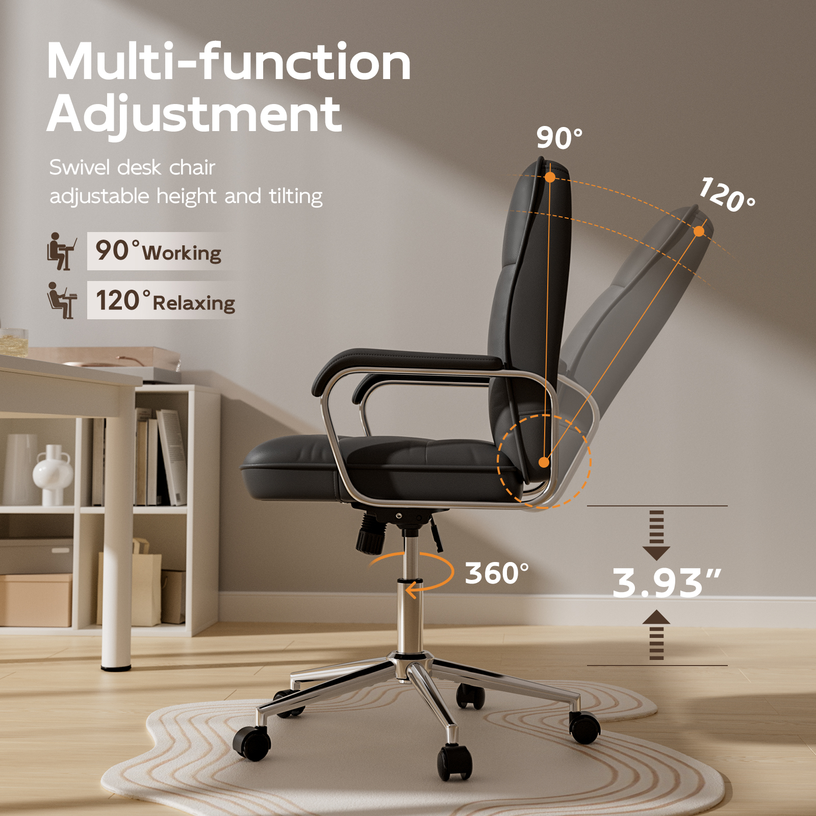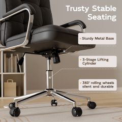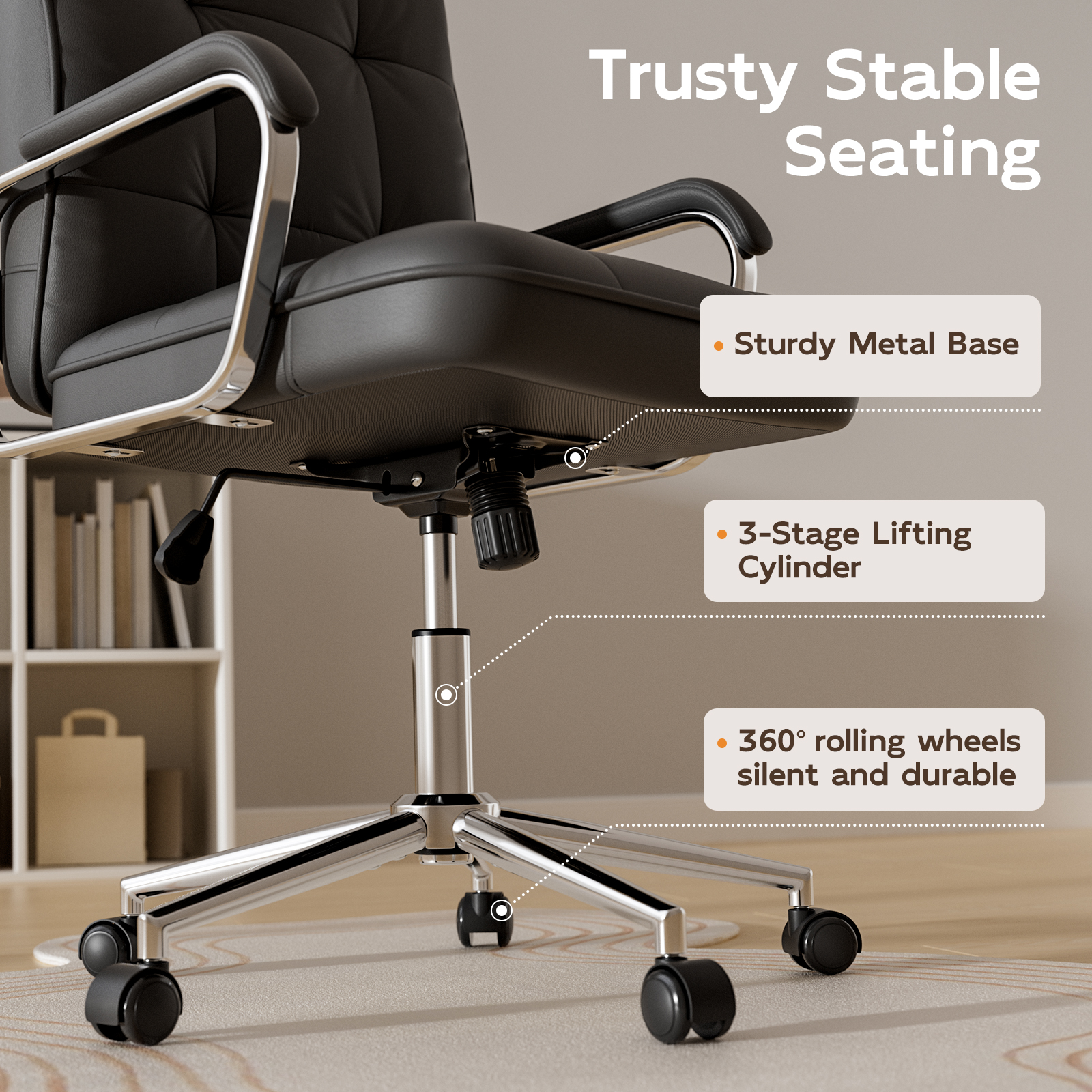 Solfway Black Office Chair, Swivel Leather Computer Desk Chair with Wheels and Padded Arms, Executive Office Chair for Adults