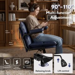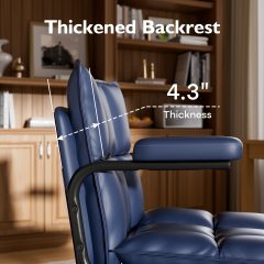 Genpo Blue Office Chair, Mid Century Modern Leather Desk Chairs with Arms, Wheels Thickend Back and Seat, Adjustable Height, Vintage Computer Chair for Home, Office