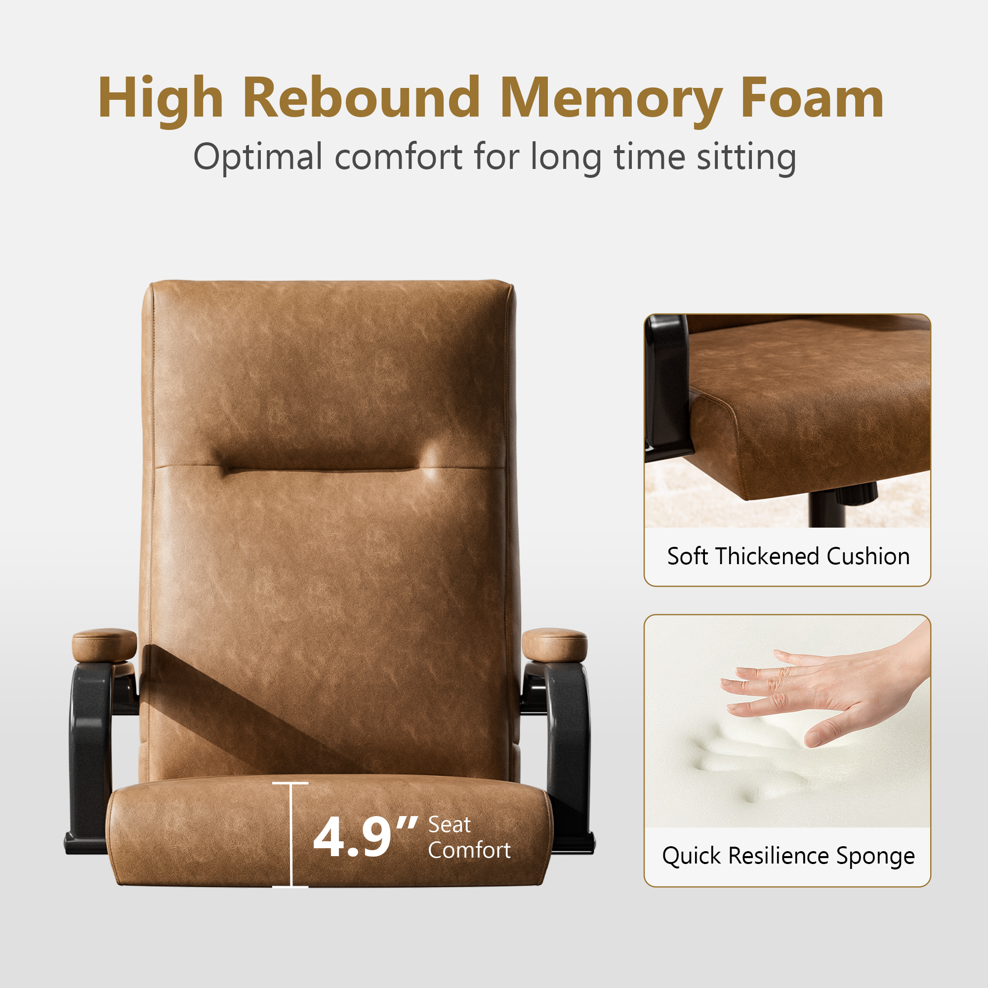 Solfway Brown Leather Office Chair with Wheels, Memory Foam Height Adjustable Computer Desk Chair, Rolling Swivel Executive Chair for Home Office