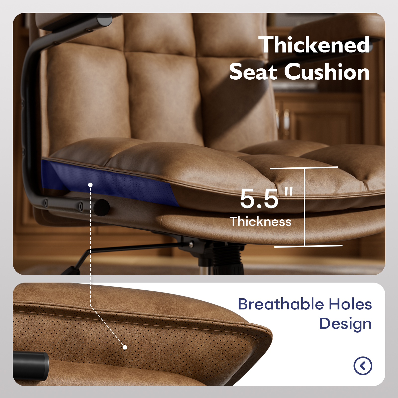 Genpo Brown Office Chair, Mid Century Modern Leather Desk Chairs with Arms, Wheels Thickend Back and Seat, Adjustable Height, Vintage Computer Chair for Home, Office