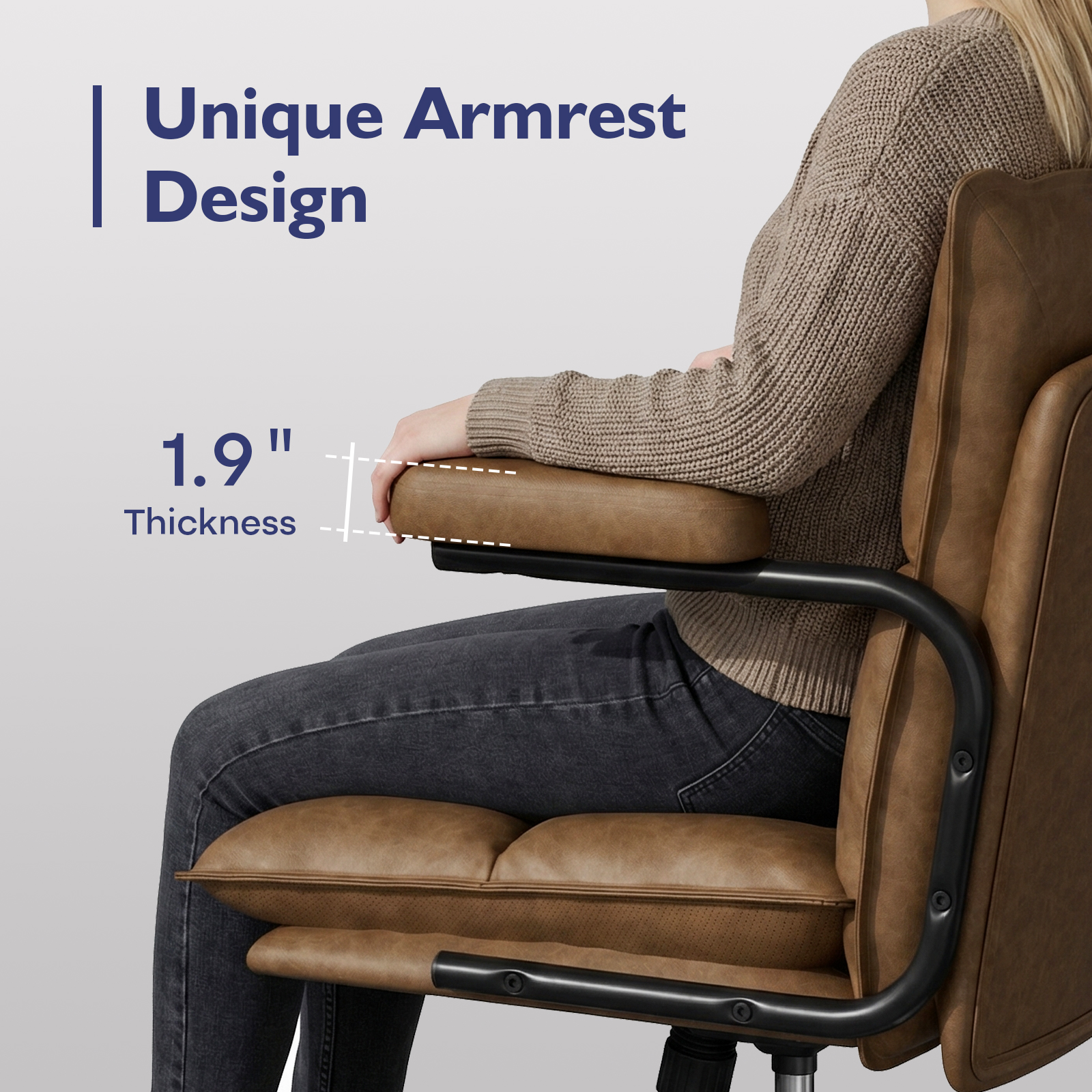- ☕Vintage Design & Premium Leather Look: Elevate your workspace with this mid century modern inspired brown office chair. Upholstered in soft touch faux leather, it offers an elegant, timeless aesthetic that complements any home office, small office, reception area or study room