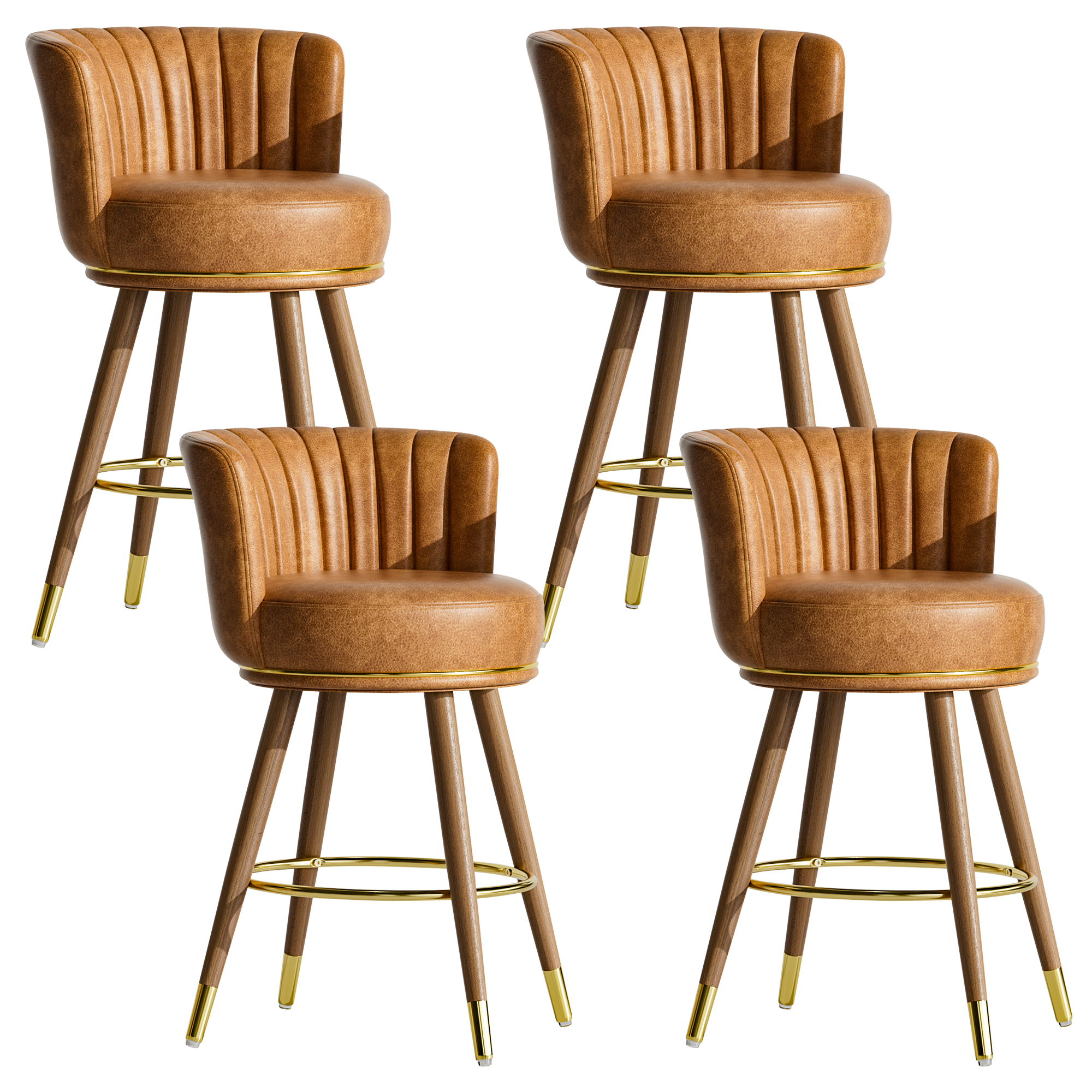 Solfway Counter Height Bar Stools, Round Seat Swivel Bar Stool Set of 4, 26 inch Low Back Leather Bar Chair with Wood Leg for Kitchen Island 300lbs, Brown