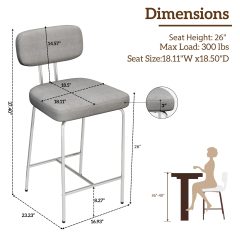 - ☕Wider Counter Bar Stools: White bar stools with a wider seat cushion and backrest designed for those with a fuller figure; Overall size: 18.11″W x 23.23″D x 37.40″H; Seat Size: 18.11″W x 18.5″D; Seat height: 26″; Weight Capacity: 300 lbs.