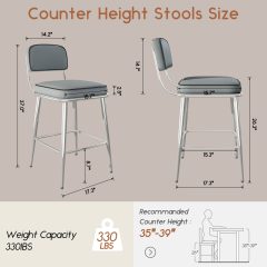- ☕Wider Counter Bar Stools: White bar stools with a wider seat cushion and backrest designed for those with a fuller figure; Overall size: 18.11″W x 23.23″D x 37.40″H; Seat Size: 18.11″W x 18.5″D; Seat height: 26″; Weight Capacity: 300 lbs.
