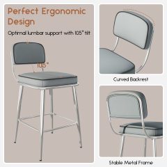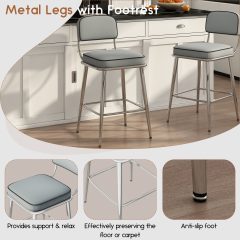 Solfway Counter Height Bar Stools Set of 2, 26″ Gray Fabric Kitchen Counter Stools with Backs, Metal Legs, Footrest and Wide Seat, Bar Chairs for Kitchen Island