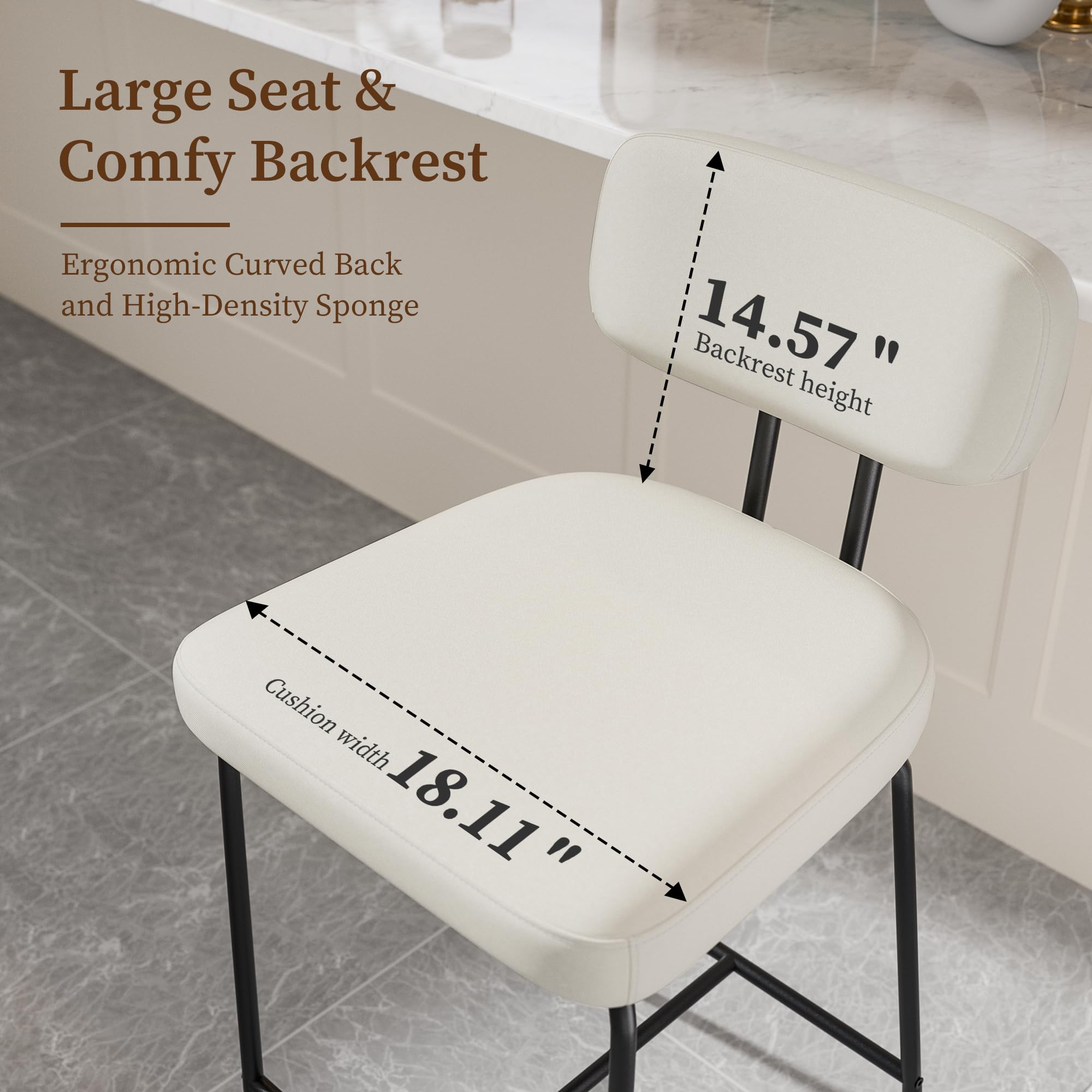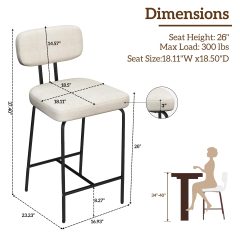 - ☕Wider Counter Bar Stools: White bar stools with a wider seat cushion and backrest designed for those with a fuller figure; Overall size: 18.11″W x 23.23″D x 37.40″H; Seat Size: 18.11″W x 18.5″D; Seat height: 26″; Weight Capacity: 300 lbs.