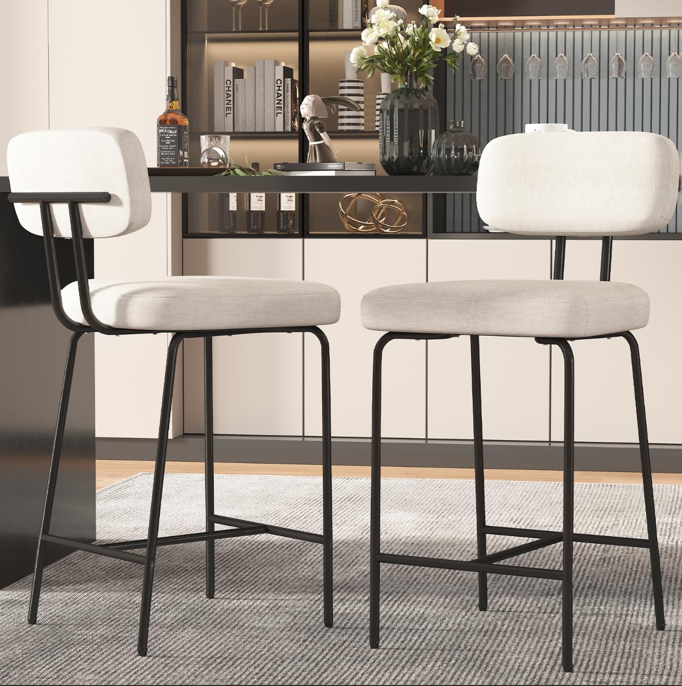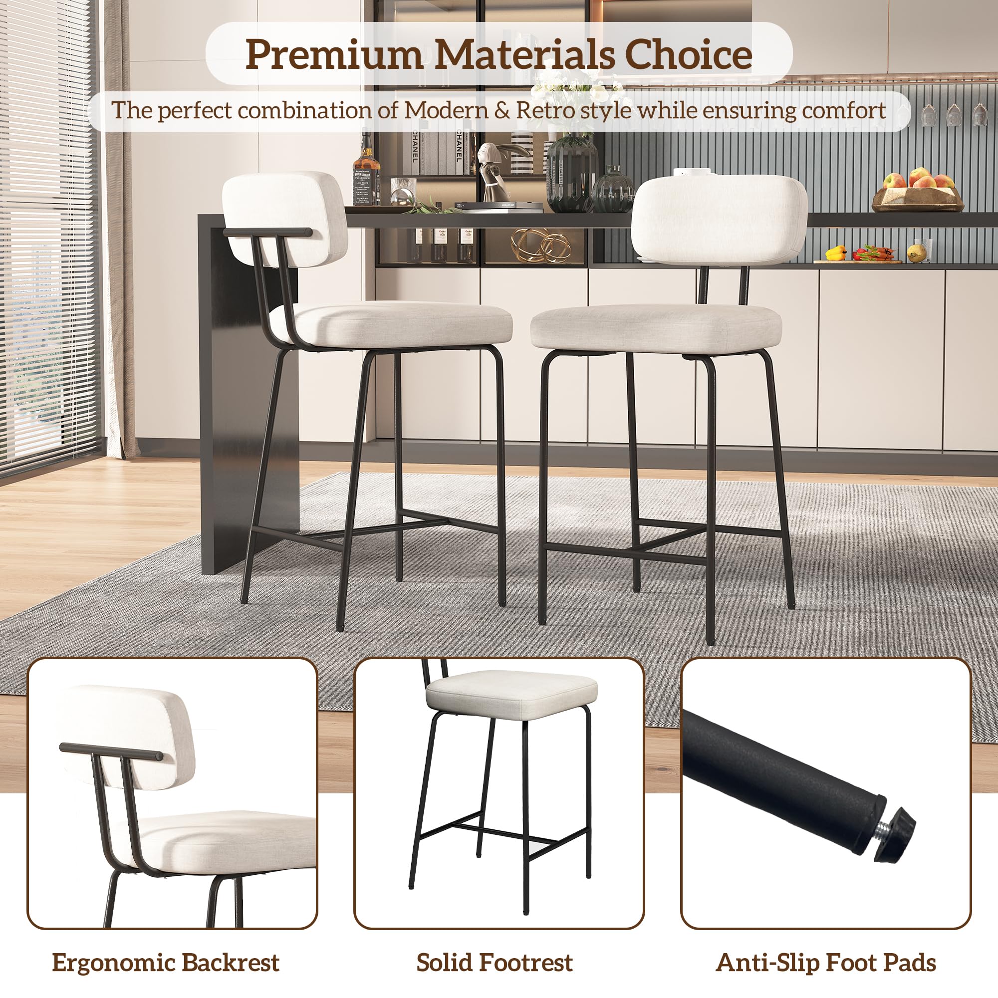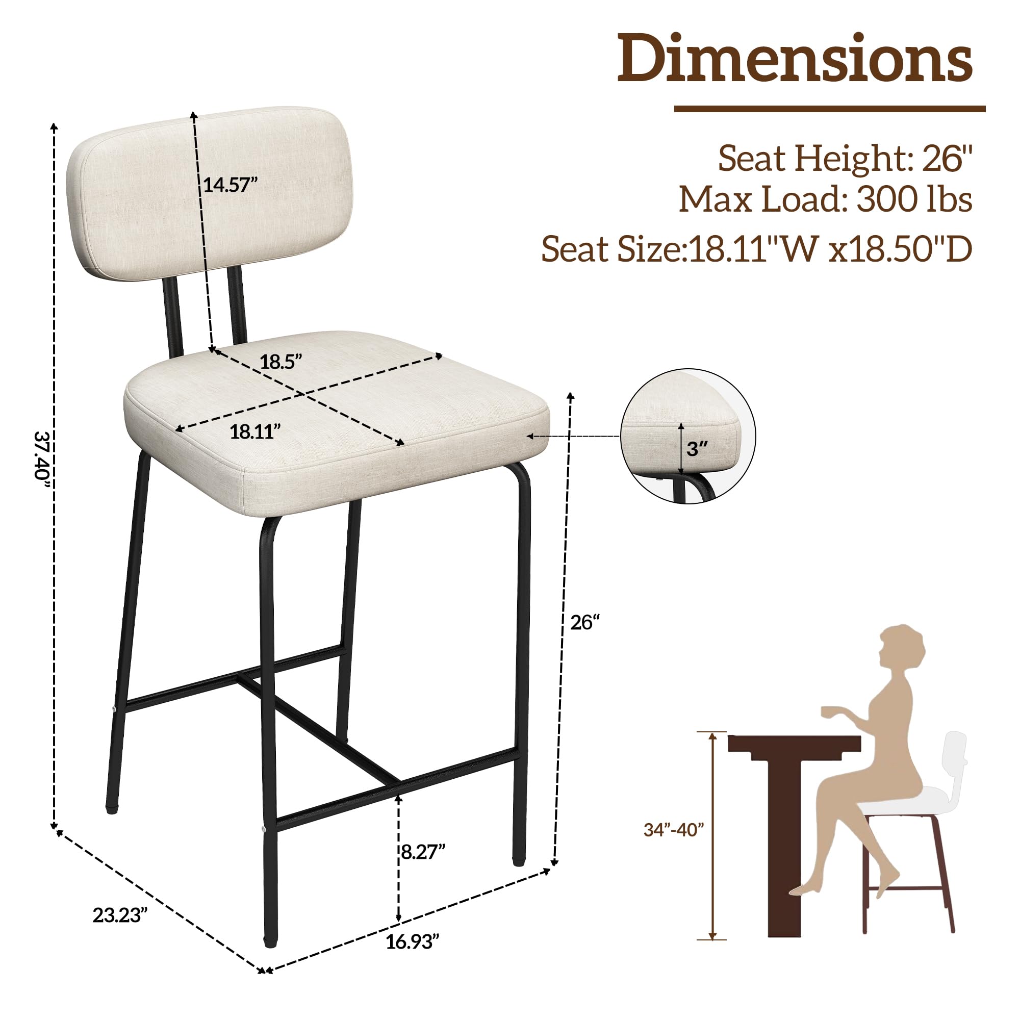 - 🥑Comfortable Barstools: Ergonomically designed seat for optimal comfort, offering back support and a footrest for leg relaxation; The kitchen island stools is made of high-quality linen fabric that resists fading; the soft cushioned seat is filled with high-density foam, which provides ample comfort for extended sitting.