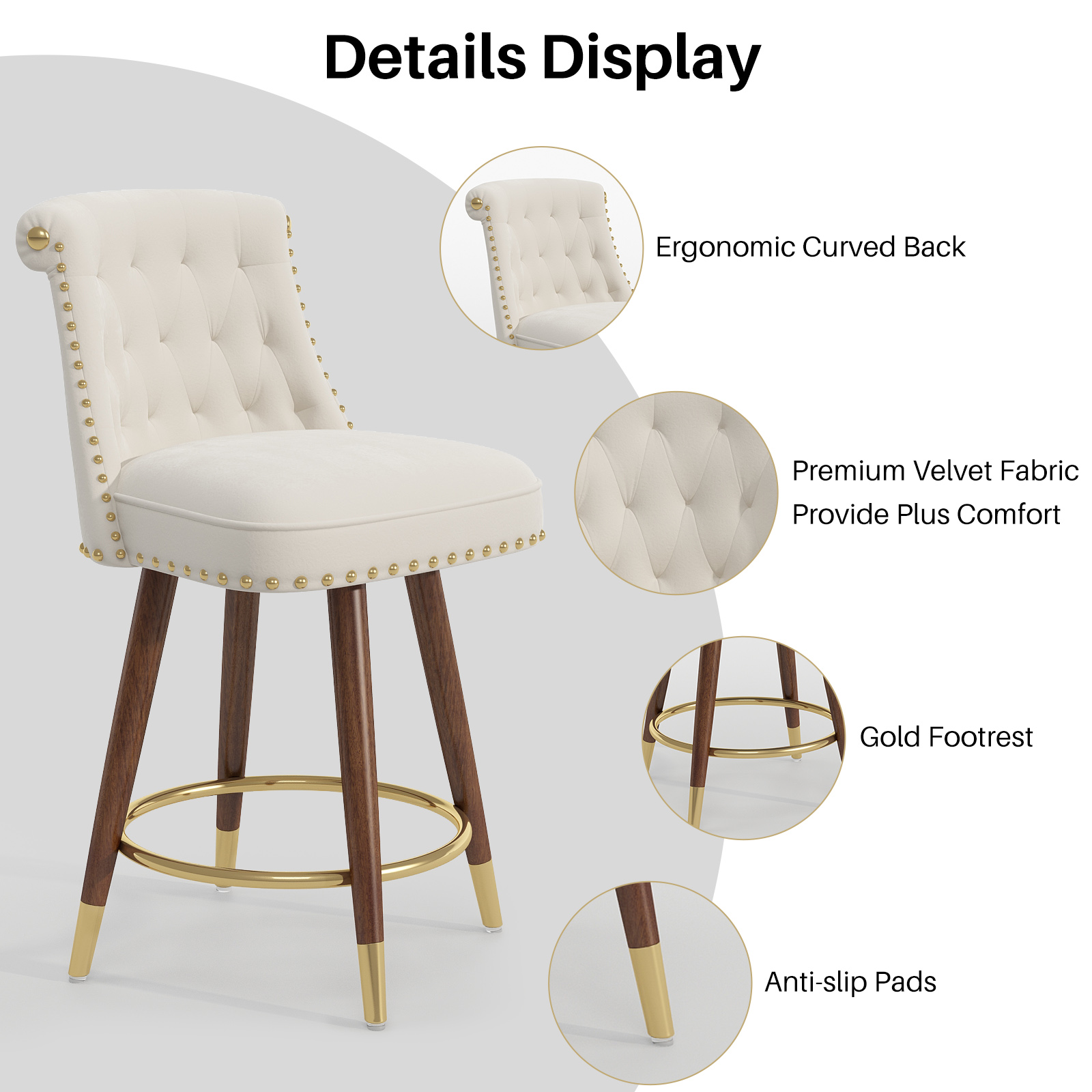 - ☕Elevate Your Space, Elevate Your Mood: Transform ordinary corners into stylish hubs! These counter height bar stools add effortless elegance to breakfast nooks or wine bars. Timeless off-white velvet whispers “refined living”.