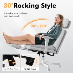 - 🚀360° Adjustable & Reclining: Enjoy smooth 360° swivel and height adjustment (19.7″–23.6″). The swivel cross legged office chair with footrest locks at 90°, 110°, or 120° angles—perfect for focused work or lounge-worthy relaxation.
