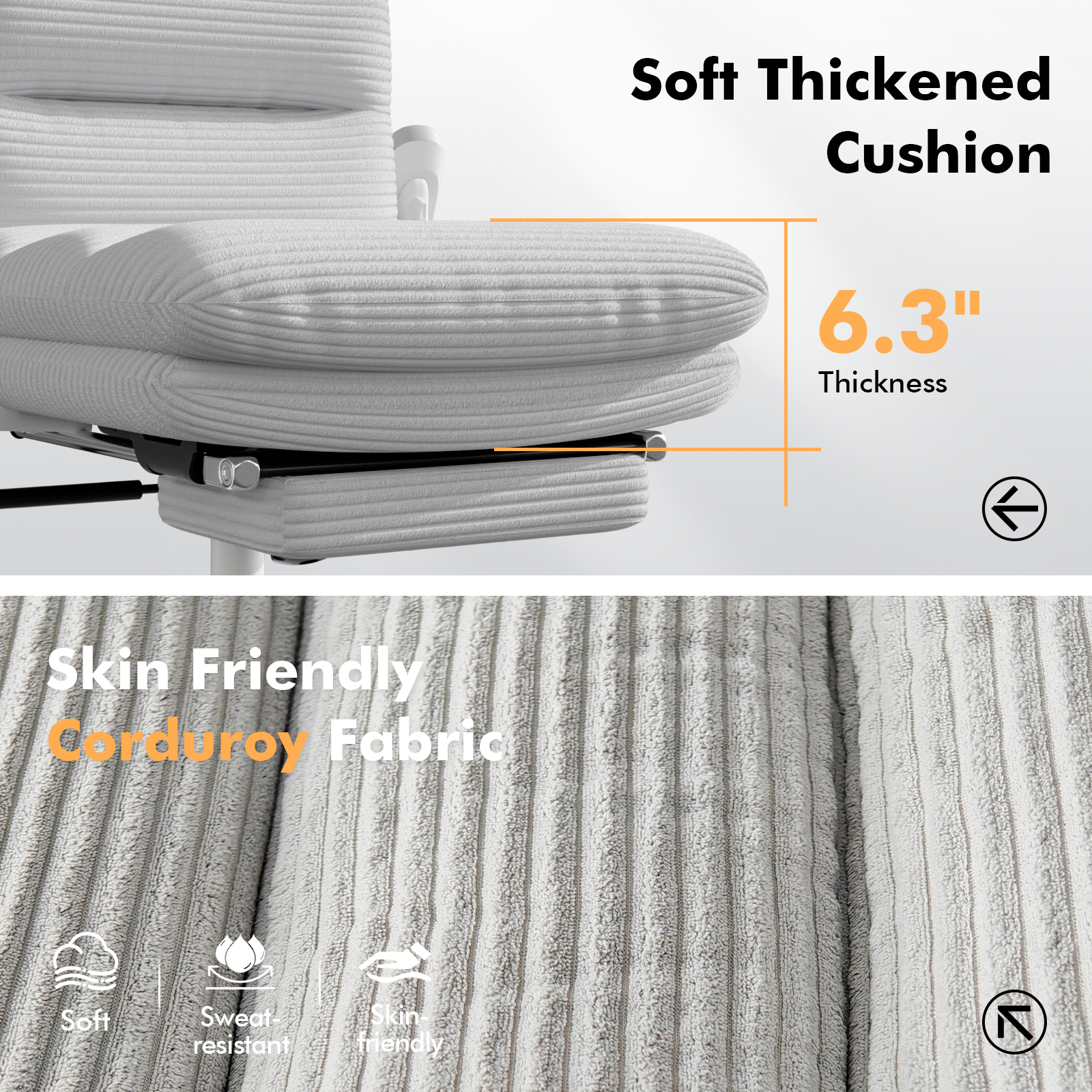 Solfway Criss Cross Chair with Wheels & Flip-up Arms, Executive Office Chair with Foot Rest, Swivel Cross Legged Office Chair, Gray Corduroy Fabric Comfy Computer Desk Chair, Vanity Chair for Home