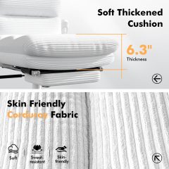 Solfway Criss Cross Chair with Wheels & Flip-up Arms, Executive Office Chair with Foot Rest, Swivel Cross Legged Office Chair, White Corduroy Fabric Comfy Computer Desk Chair, Vanity Chair for Home