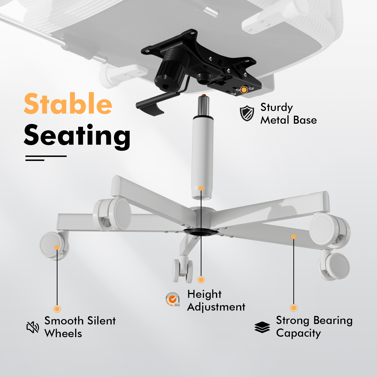 - Base: Heavy Duty Metal Base with Smooth PU Wheels