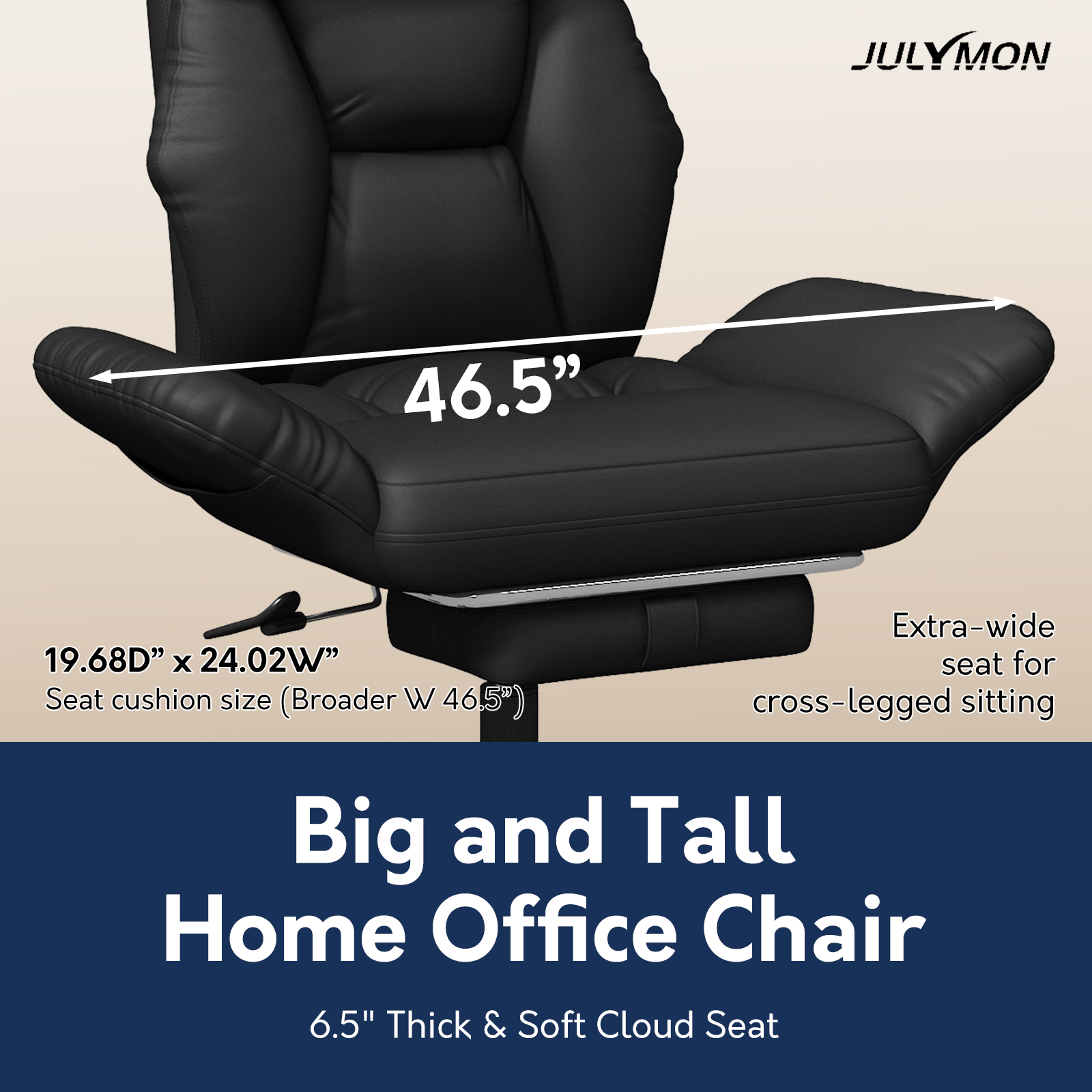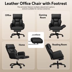 - 🌈Comfy Desk Chair: The big and tall office chair 500lbs suits users from 5’0″ to 6’2″, featuring soft scratch-resistant leather, high-density foam, a footrest, and armrests with 6 adjustable positions and 2 storage pouches for personalized comfort and support.