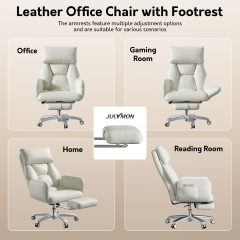 - ☕Easy to Adjust: Solfway home office desk chair with foot rest reclines from 90° to 120° with 3 lockable angles. It features a 3.15-inch adjustable seat height and Reversible armrests to suit any sitting posture—perfect for personalized comfort.