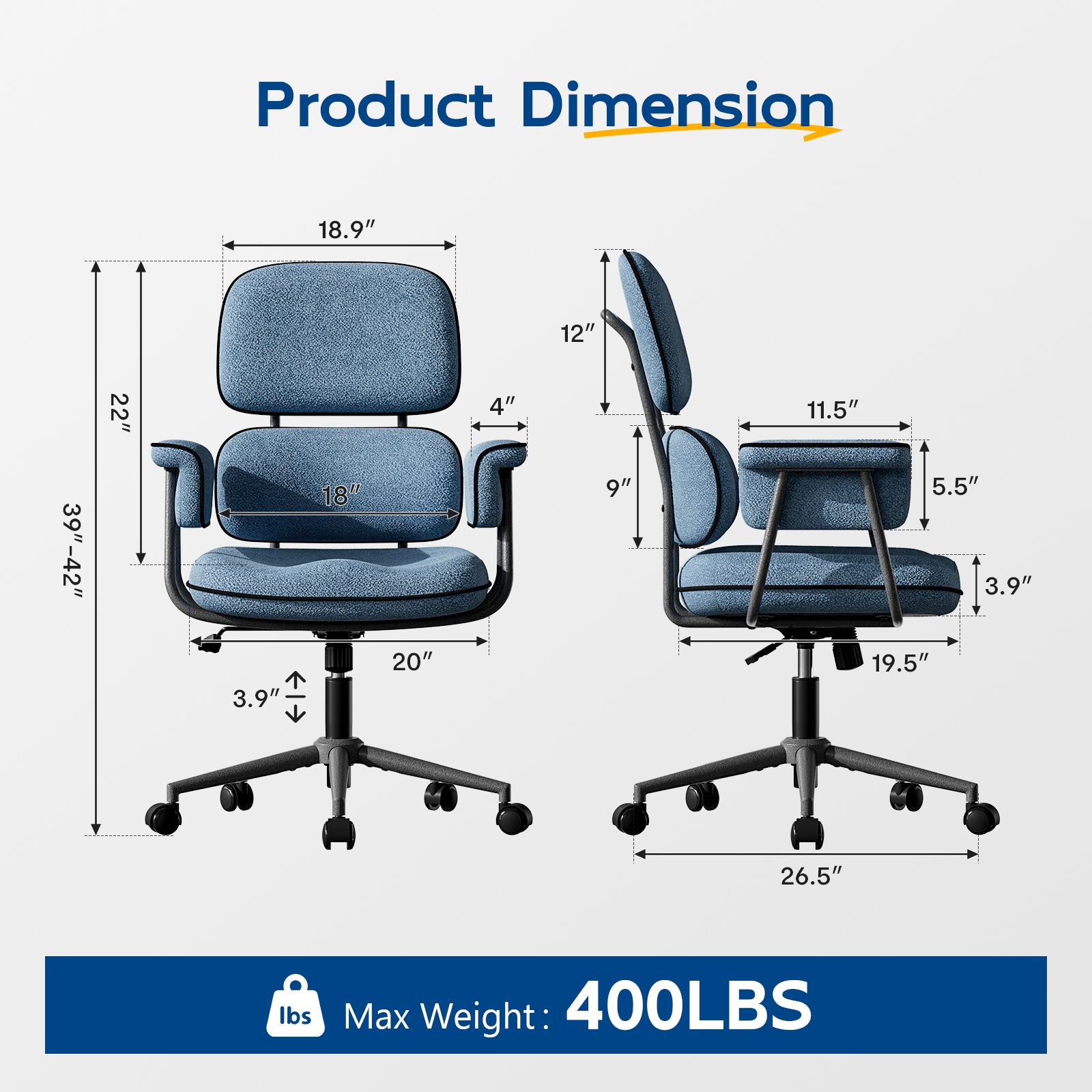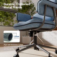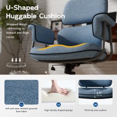 Genpo Desk Chair with Wheels and Arms, Blue Linen Fabric Executive Office Chair with Memory Foam Wide Seat, Padded Arms, Lumbar Support and Adjustable Height