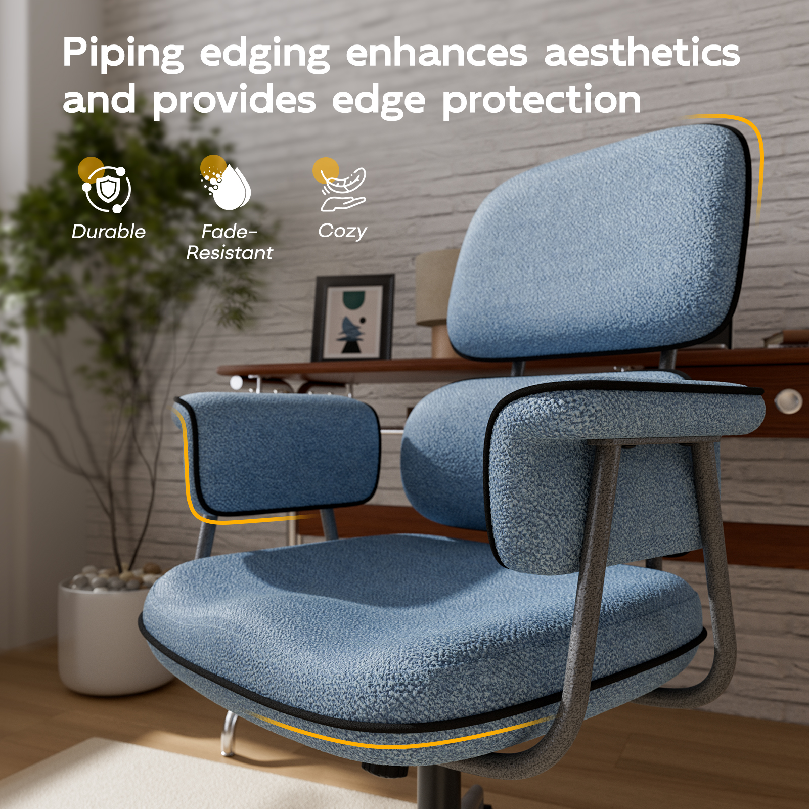 Crafted with premium scratch-resistant & stain-proof PU leather upholstery, reinforced by high-density foam cushioning. Built on a durable 5-star aluminum base with SGS-certified gas lift cylinder and ultra-smooth PU casters that protect floors.