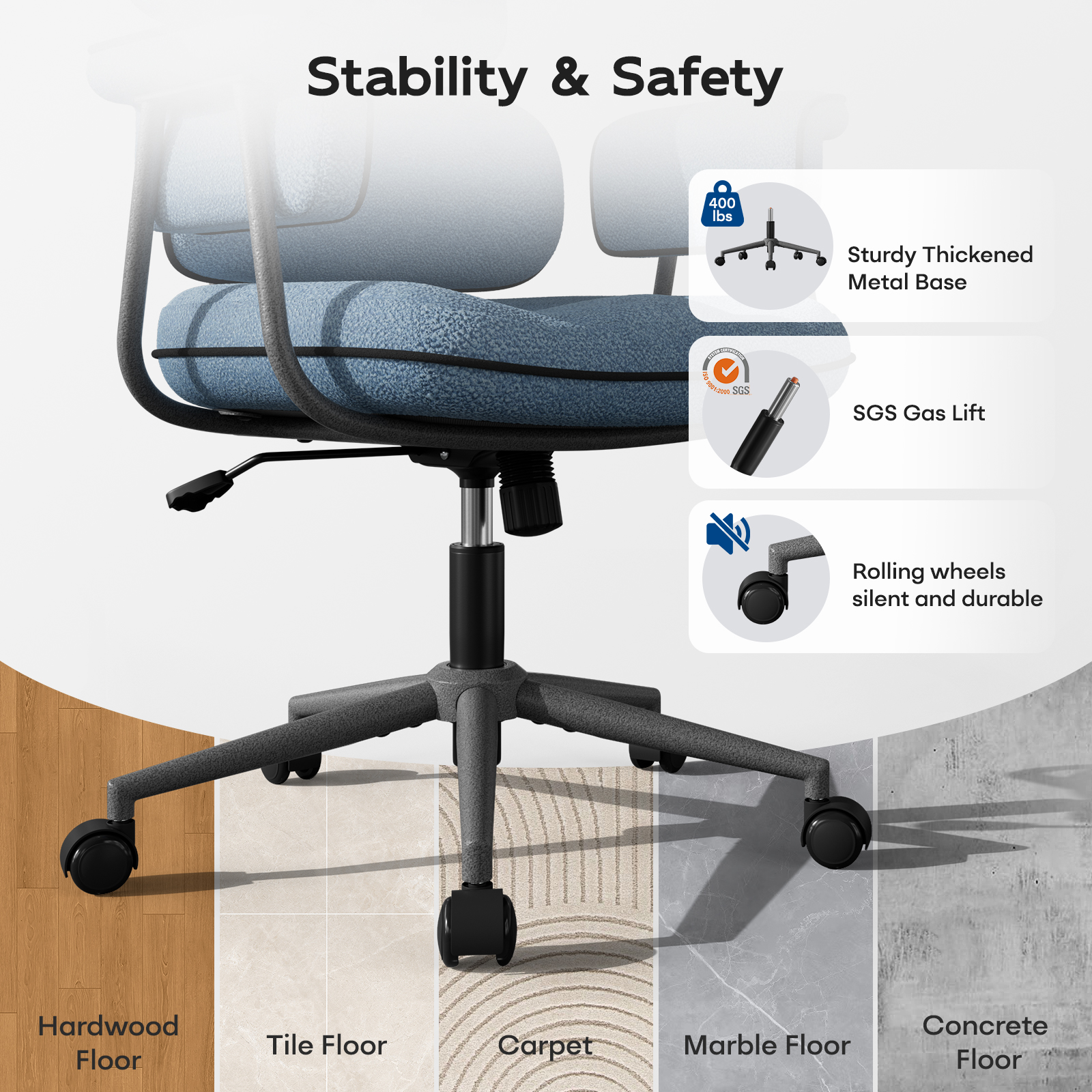 - : Heavy Duty Metal Base with Smooth PU Wheels
