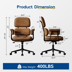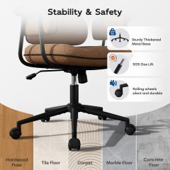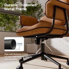 Genpo Desk Chair with Wheels and Arms, Brown Linen Fabric Executive Office Chair with Memory Foam Wide Seat, Padded Arms, Lumbar Support and Adjustable Height
