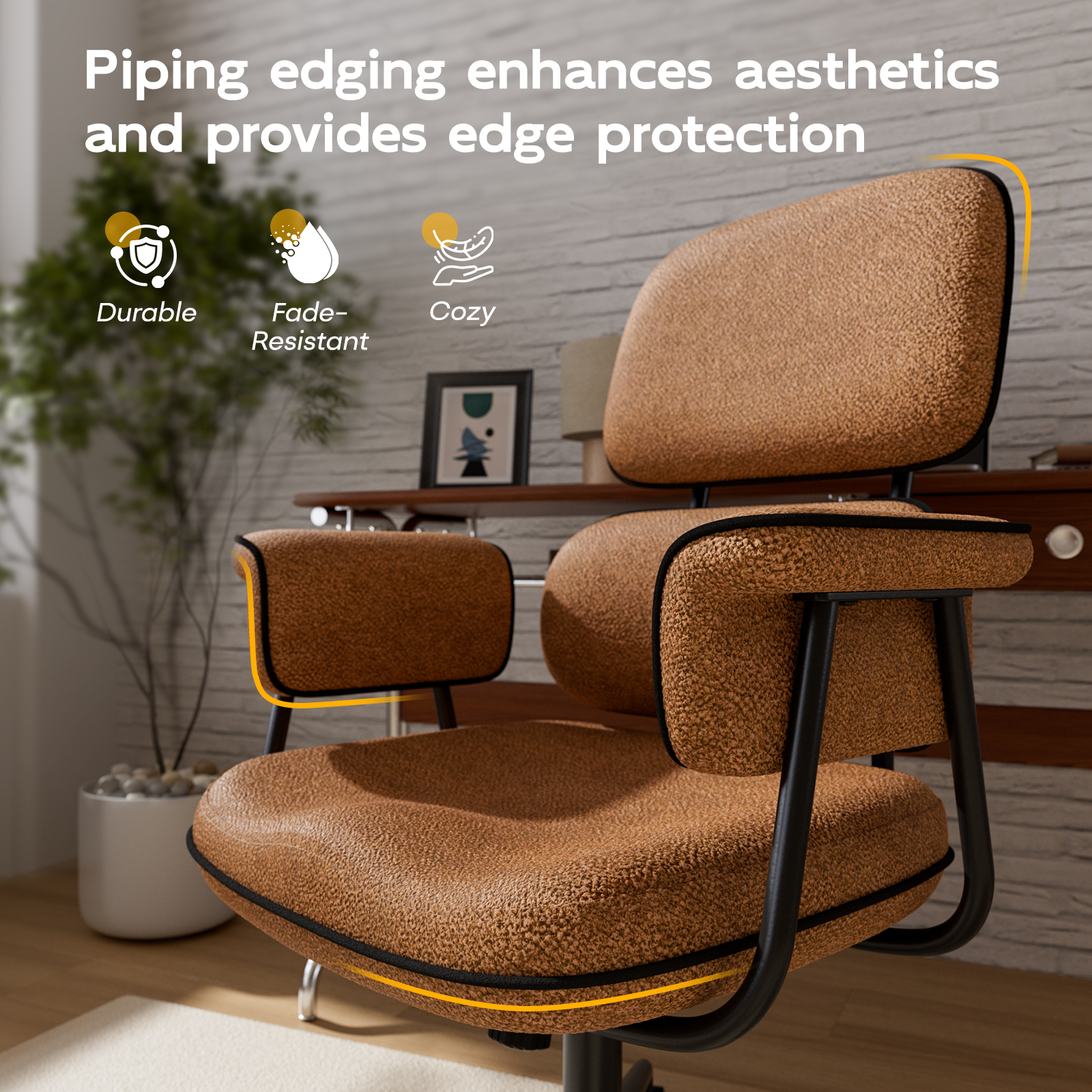 Crafted with premium scratch-resistant & stain-proof PU leather upholstery, reinforced by high-density foam cushioning. Built on a durable 5-star aluminum base with SGS-certified gas lift cylinder and ultra-smooth PU casters that protect floors.