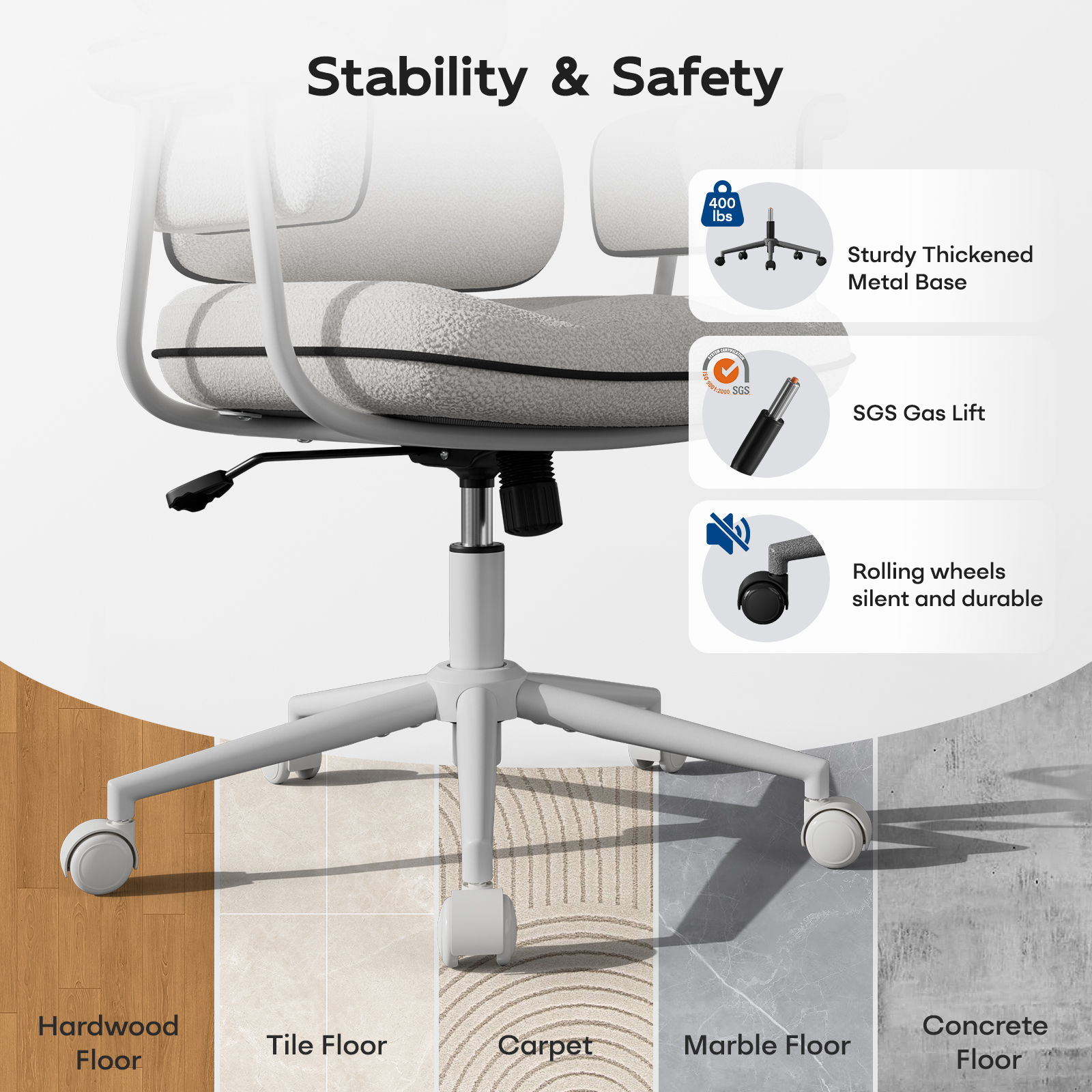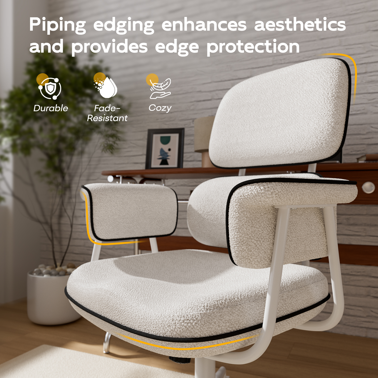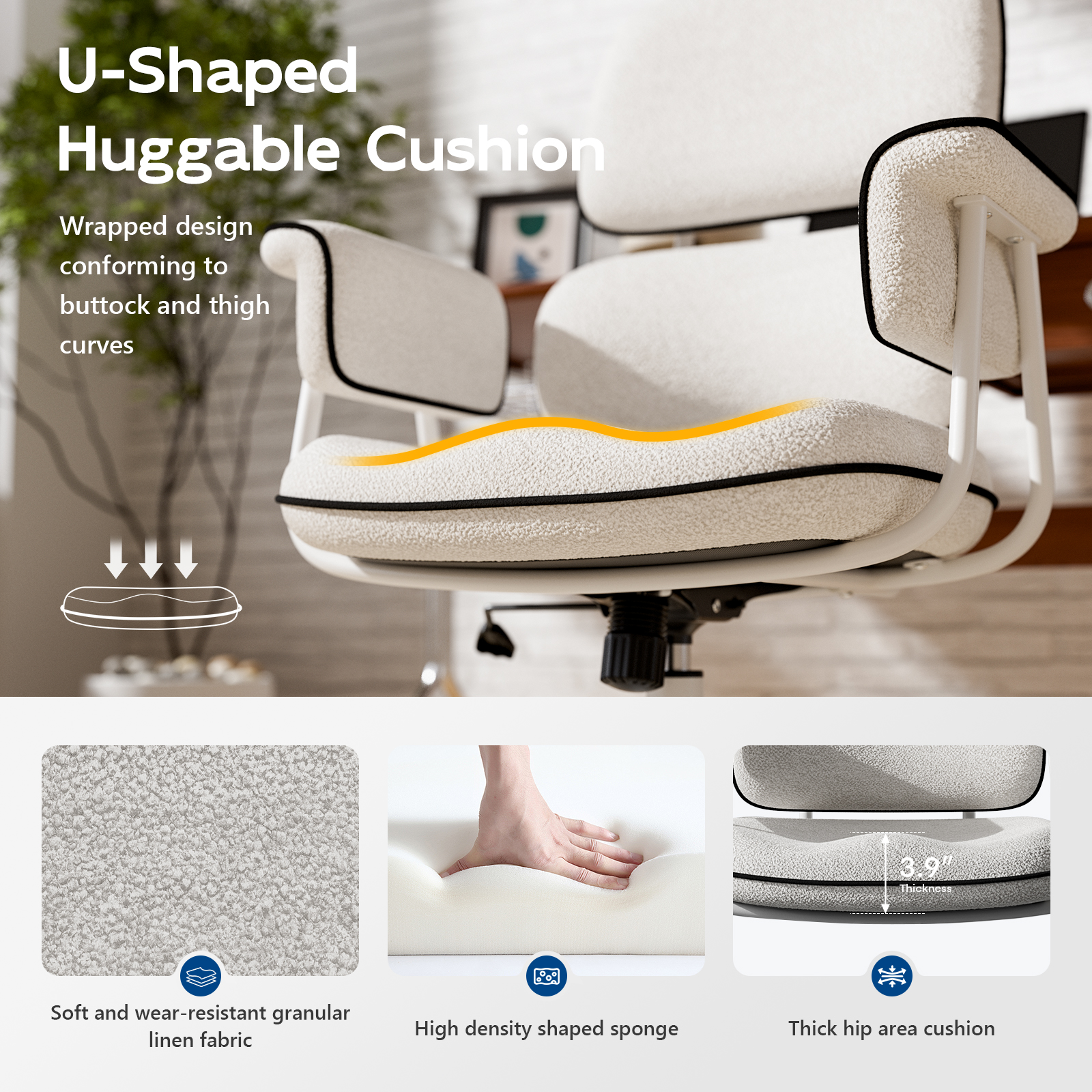 Genpo Desk Chair with Wheels and Arms, White Linen Fabric Executive Office Chair with Memory Foam Wide Seat, Padded Arms, Lumbar Support and Adjustable Height