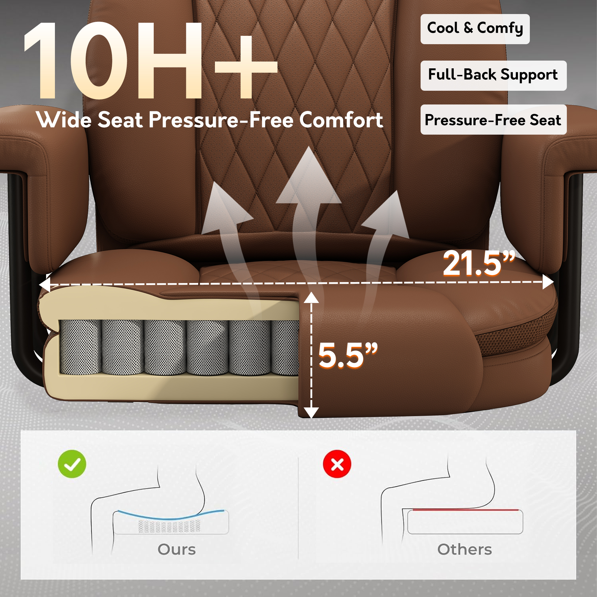 - 🍭 Premium Cushioning: Made with breathable leather and high-quality foam. +17.3% Anti-Deformation and +31.2% Rebound Resilience keep the cushion soft, supportive, and durable for long-term sitting