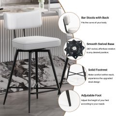Our chic and comfortable barstools is with an elegantly curved backrest and plush upholstered seat, these counter height stools offer both style and support. The unique footrest design and anti-slip pads ensure stability, while the 360-degree swivel feature adds modern versatility. Elevate your space with these stylish bar stools!