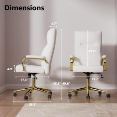 Solfway White and Gold Office Chair Memory Foam, White Leather Computer Desk Chairs with Wheels and Arms, High Back Executive Office Chair for Girl and Women